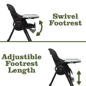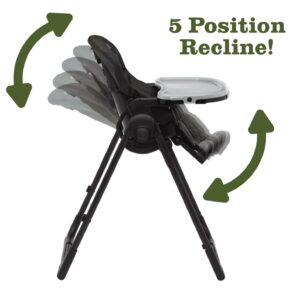 – FITS YOUR CHILD: This high chair features 6 adjustable height positions, 5 position recline, 3 position djustable footrest and 3 position adjustable plastic tray