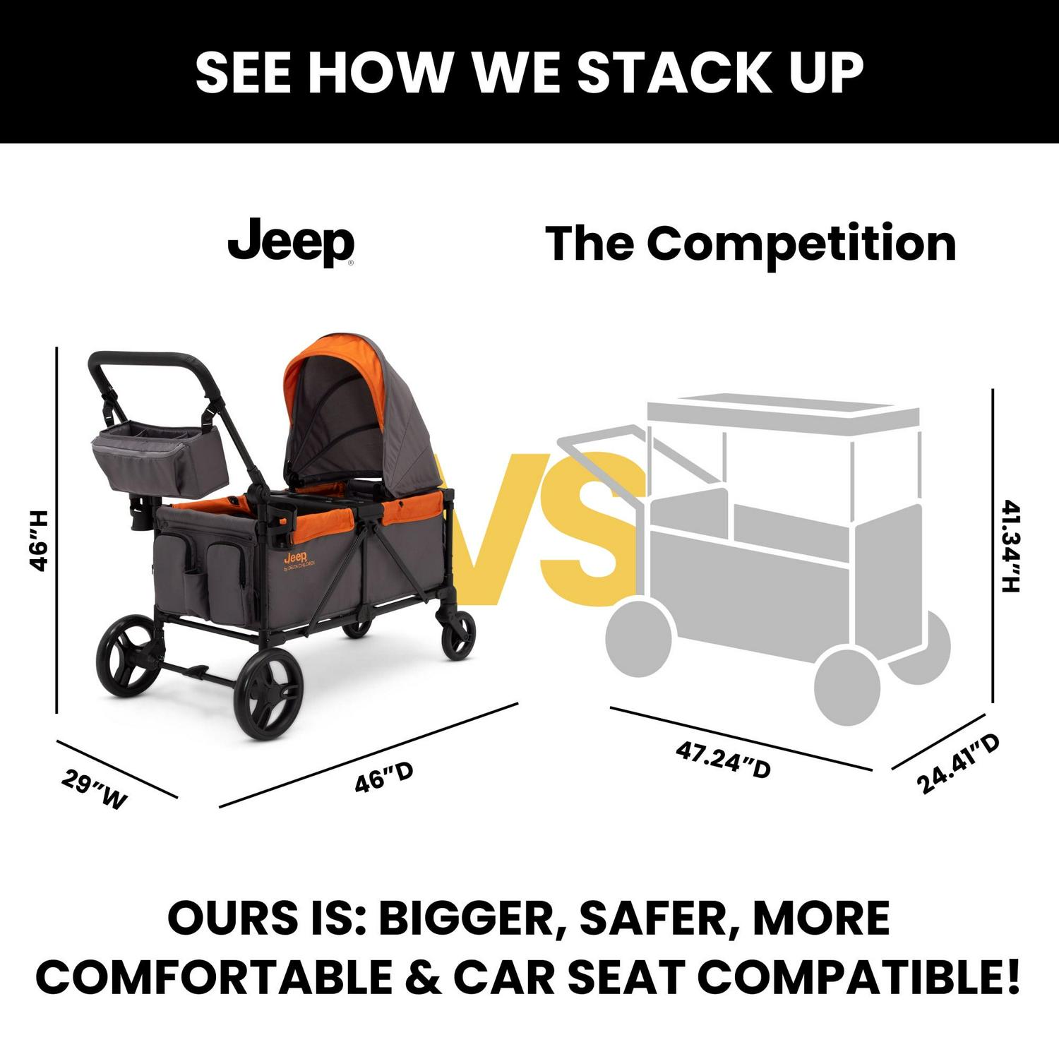 Jeep Sport All-Terrain Stroller Wagon by Delta Children – Includes Canopy, Parent Organizer, Adjustable Handlebar, Snack Tray and Cup Holders, Grey/Bonfire