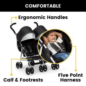 – LIGHTWEIGHT: The ultimate in convenience, this lightweight double stroller has a durable frame that only weighs 19.4 lbs.