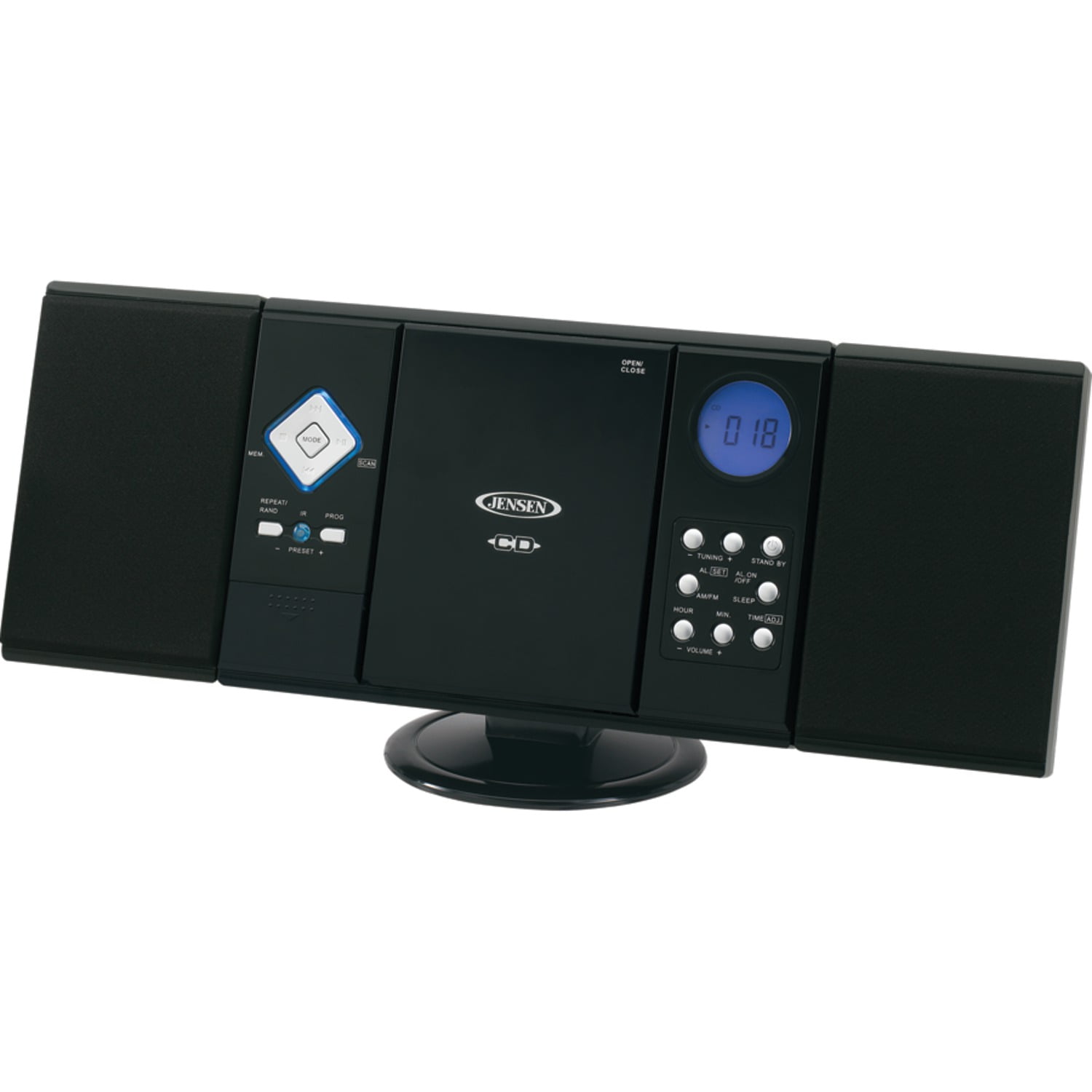 Add entertainment options to your home without taking up floor space with the Jensen JMC-180A Wall Mount CD player. It features a vertically positioned disc loader and offers the option to repeat a single track or an entire album. Program playlists or skip to the song you want. You can also set an alarm as a reminder or a wake-up call. Pick up your favorite local broadcasts and save up to 20 stations or connect a portable music player to the auxiliary port. This Jensen wall-mountable CD system includes a remote control and features a digital display to serve as an intuitive interface.