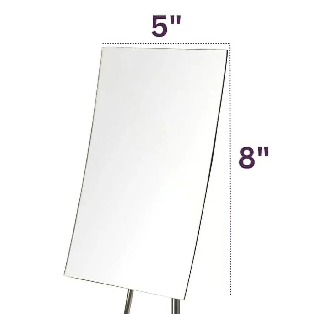 The Jerdon JP358BK 5-inch by 8-inch Tabletop Rectangular Adjustable Mirror is an ideal bathroom and makeup accessory. With various angle options and a 3X magnification, makeup application and grooming are simple and catered specifically to your needs. This stainless-steel, chrome-finished tabletop mirror stands upright on countertops, vanities, desks, and tables. This rectangular mirror is 5-inches by 8-inches in size with 3x magnification and frameless design for a modern look. This sleek mirror has an attractive black finish that protects against moisture and condensation. The JP358BK stands 13.75-inches high and has a body that can easily be moved around, while still firmly holding a specific position.