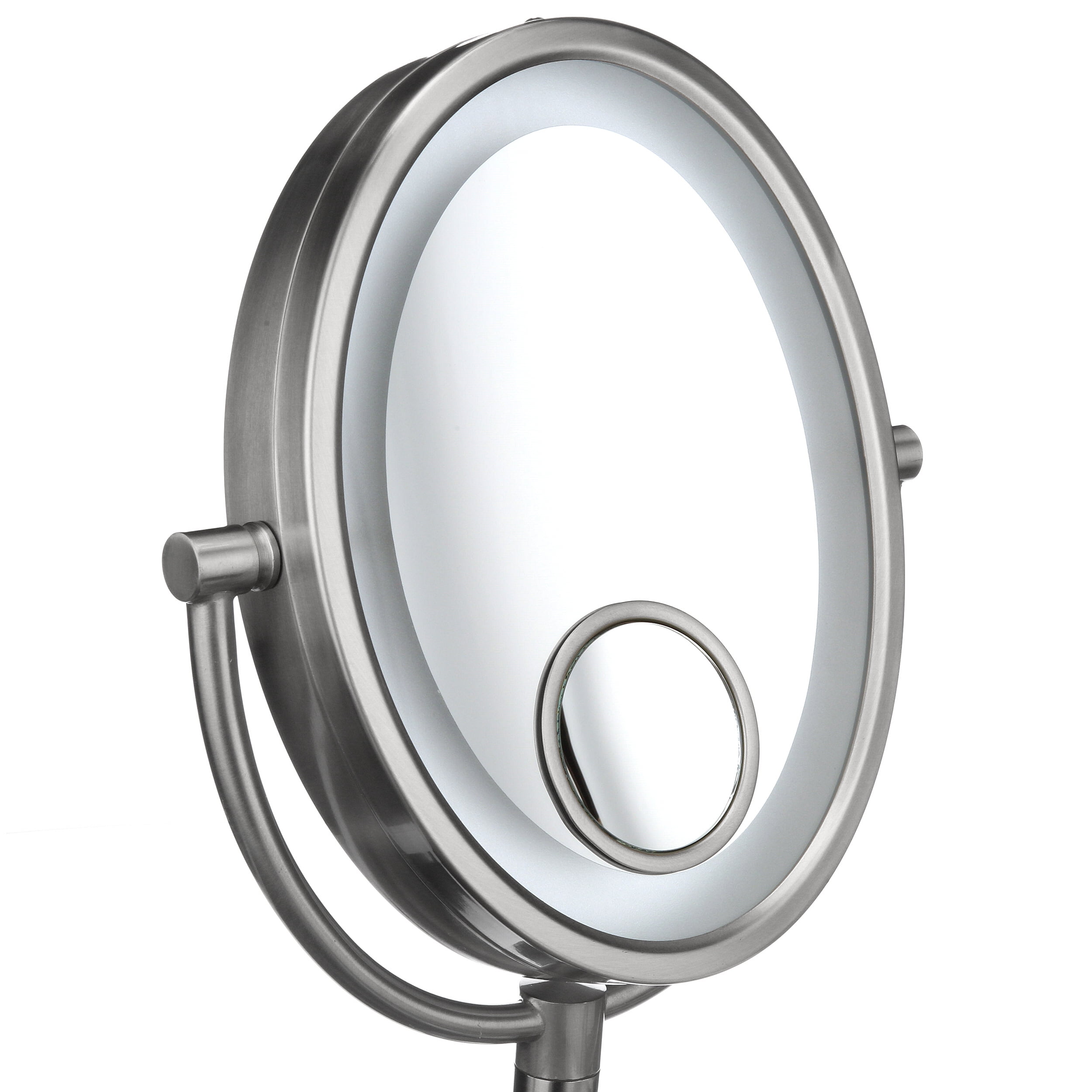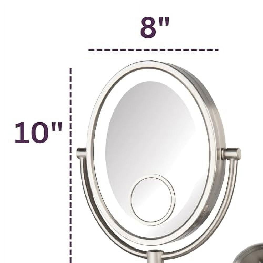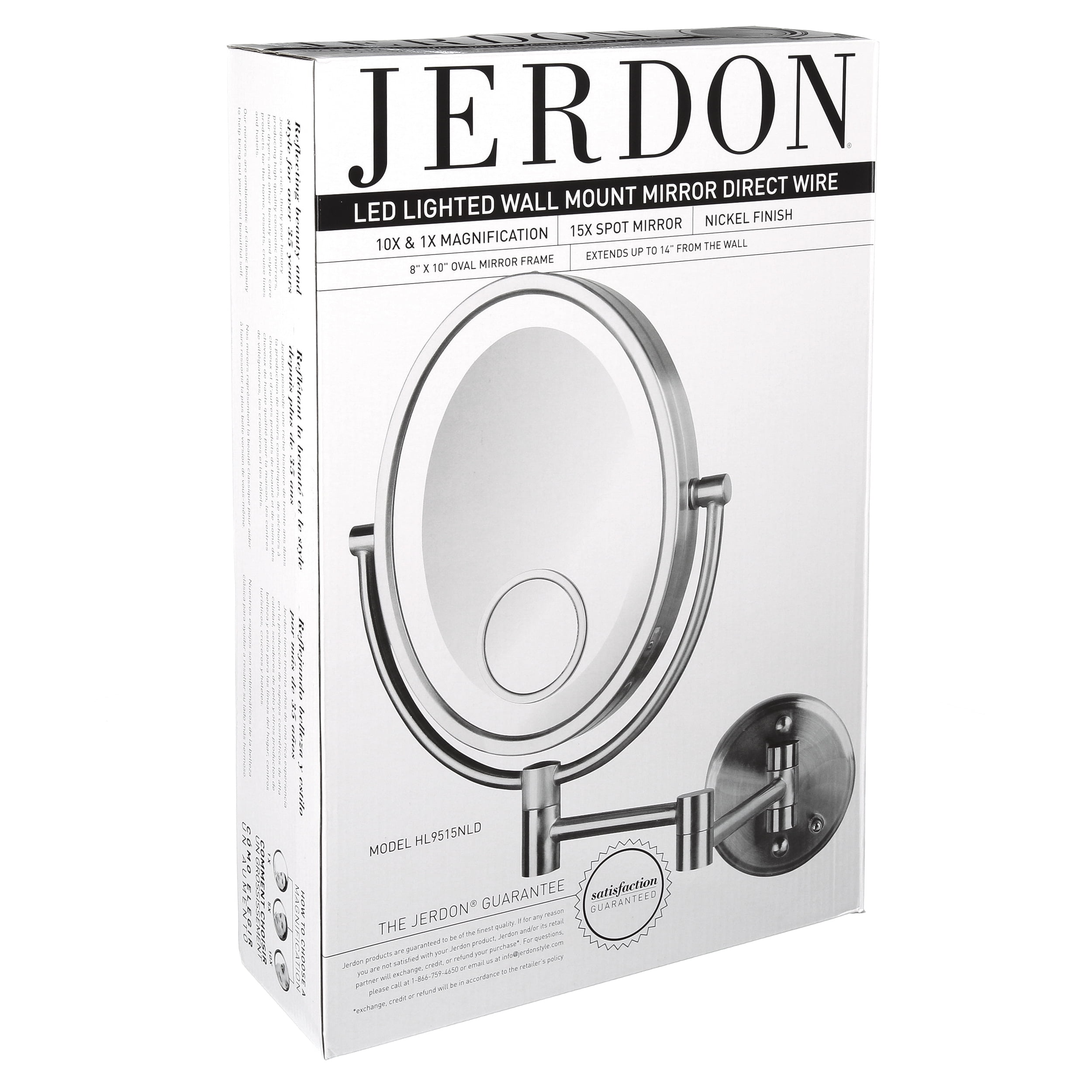 Jerdon 8 inch by 10 inch Oval Wall-Mounted Lighted Makeup Mirror with 10X-1X and 15X Spot Magnification, Nickel Finish, Direct Wire -Model HL9515NLD