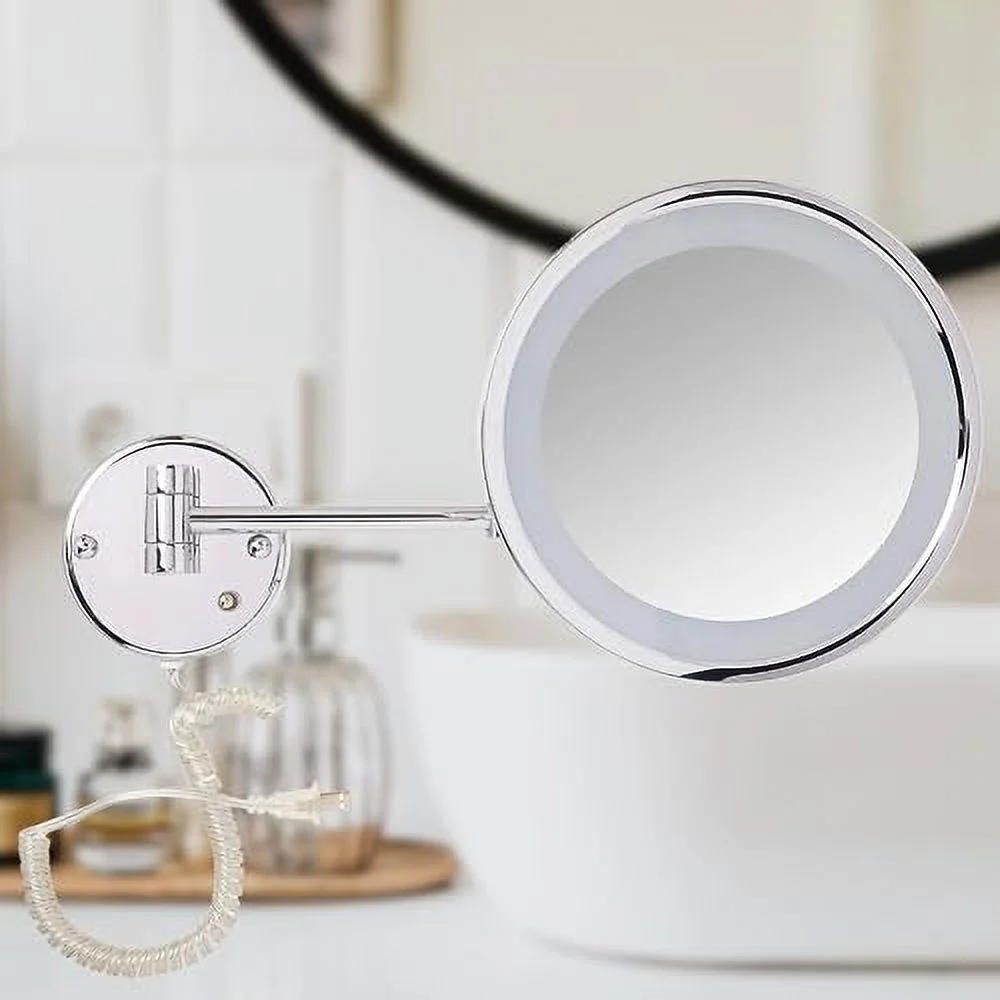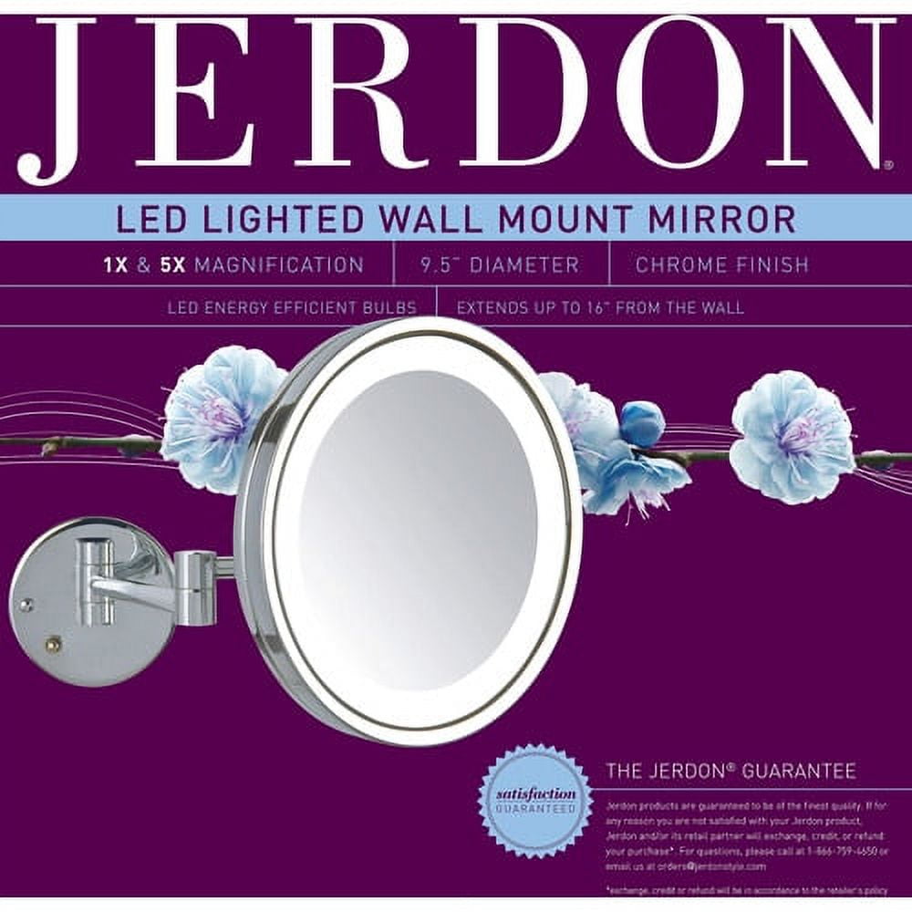 WALL-MOUNT CONVENIENCE – Experience the space-saving convenience of a wall-mounted makeup mirror. This circular mirror is attached to a 16-inch chrome-finish arm that extends from the wall. Save valuable counter space with this adjustable, wall-mount mirror LUXURY DESIGN – Update your bathroom with this ultra-modern makeup mirror. The simple, chrome base paired with the round, light-up mirror creates a contemporary look that is sure to impress. This elegant mirror is used in luxury hotel rooms and spas across the world. MAGNIFICATION OPTIONS – This Jerdon makeup mirror has a 5X magnification. The 5X magnification makes tweezing and grooming easier while still providing a perfect view for makeup application. SPECIFICATIONS – This mirror is perfect for any bathroom, especially ones that are low on space. This chrome finish mirror includes a 16-inch extendable wall-mount and mounting hardware, allowing you to save valuable counter space. This 9.5-inch mirror is great for grooming, makeup application and more! The frame of the mirror is lined with LED bulbs that evenly distribute the light. This Jerdon Makeup Mirror is protected under a 1-year warranty. This mirror comes with a 6.5’ power cord and plug HIGH-QUALITY – Jerdon has earned a reputation for excellence in the beauty industry with its broad range of quality cosmetic mirrors (including vanity, lighted and wall mount mirrors), hair dryers and other styling appliances. For over 40 years the Jerdon brand has been a leading provider to the finest homes, hotels, resorts, cruise ships and spas worldwide. Experience the luxury and superior quality of Jerdon personal mirrors