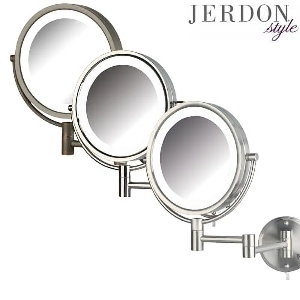 WALL-MOUNT CONVENIENCE – Experience the space-saving convenience of a wall-mounted makeup mirror. This circular mirror is attached to a 13.5-inch arm that extends from the wall. Save valuable counter space with this adjustable, wall-mount mirror LUXURY DESIGN – Update your bathroom vanity with this ultra-modern makeup mirror. The simple, bronze base paired with the halo lighting creates a contemporary look that is sure to impress. This elegant mirror is used in luxury hotel rooms across the world. MAGNIFICATION OPTIONS – This Jerdon makeup mirror has 2 magnification levels, 1X and 8X. The 8X magnification makes tweezing and grooming easier while the 1X is perfect for basic skincare and makeup application. HALO LIGHTING – The Jerdon HL88BZL mirror features halo lighting around the perimeter of the circular frame. The LED bulbs use less energy and are cool to the touch. Experience flawless makeup application and grooming with the combination of bright lights and 8X magnification SPECIFICATIONS – This bronze finish mirror includes a 13.5-inch extendable wall-mount and mounting hardware, allowing you to save valuable counter space. This 8.5″ diameter mirror is great for shaving, grooming, makeup application and more! This mirror comes with a 6.5’ power cord and plug.