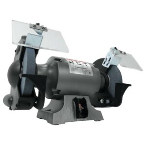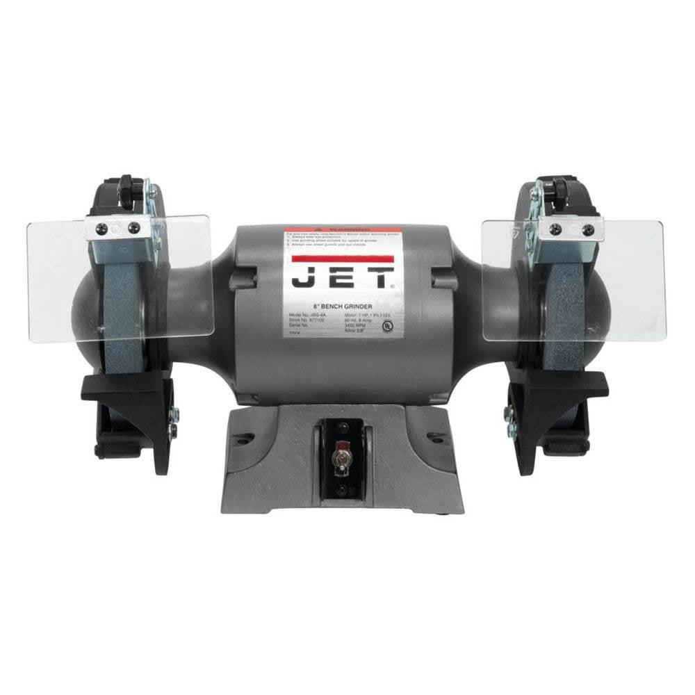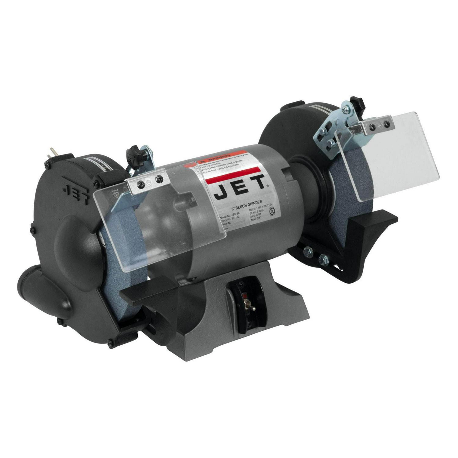 FOR SHOPS THAT MAY BE SHORT ON SPACE, A CAST IRON JET BENCH GRINDER DELIVERS WORK POWER AND PRISTINE FINISHES. BUILT TO WITHSTAND THE HIGH-VOLUME DEMANDS OF EVEN THE BUSIEST SHOPS, THIS HIGH-QUALITY MACHINE GRINDS, SHARPENS AND SMOOTHS WITH EQUAL PRECISION AND FLAWLESS RESULTS FEATURES UL STYLE”MARGIN-TOP0PX; PADDING-TOP 5PX; PADDING-BOTTOM 5PX;” UL LISTED TOTALLY ENCLOSED PRE-LUBRICATED BALL BEARINGS RUBBER MOUNTS PREVENT MOVEMENT HEAVY-DUTY GUARDED TOGGLE SWITCH CAST IRON WHEEL GUARDS AND DUST VENTS ONE-PIECE QUICK ADJUSTING SPARK GUARDS LARGE EYE SHIELDS WITH QUICK ADJUSTMENT FINE AND COARSE VITRIFIED GRINDING WHEELS INCLUDED WARNING: This product can expose you to chemicals including lead which is known to the State of California to cause cancer and birth defects or other reproductive harm. For more information go to www.P65warnings.ca.gov –