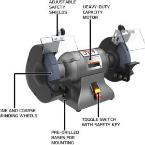 Jet 578008 8 Inch Stationary Workshop Durable Industrial Bench Grinder, Gray