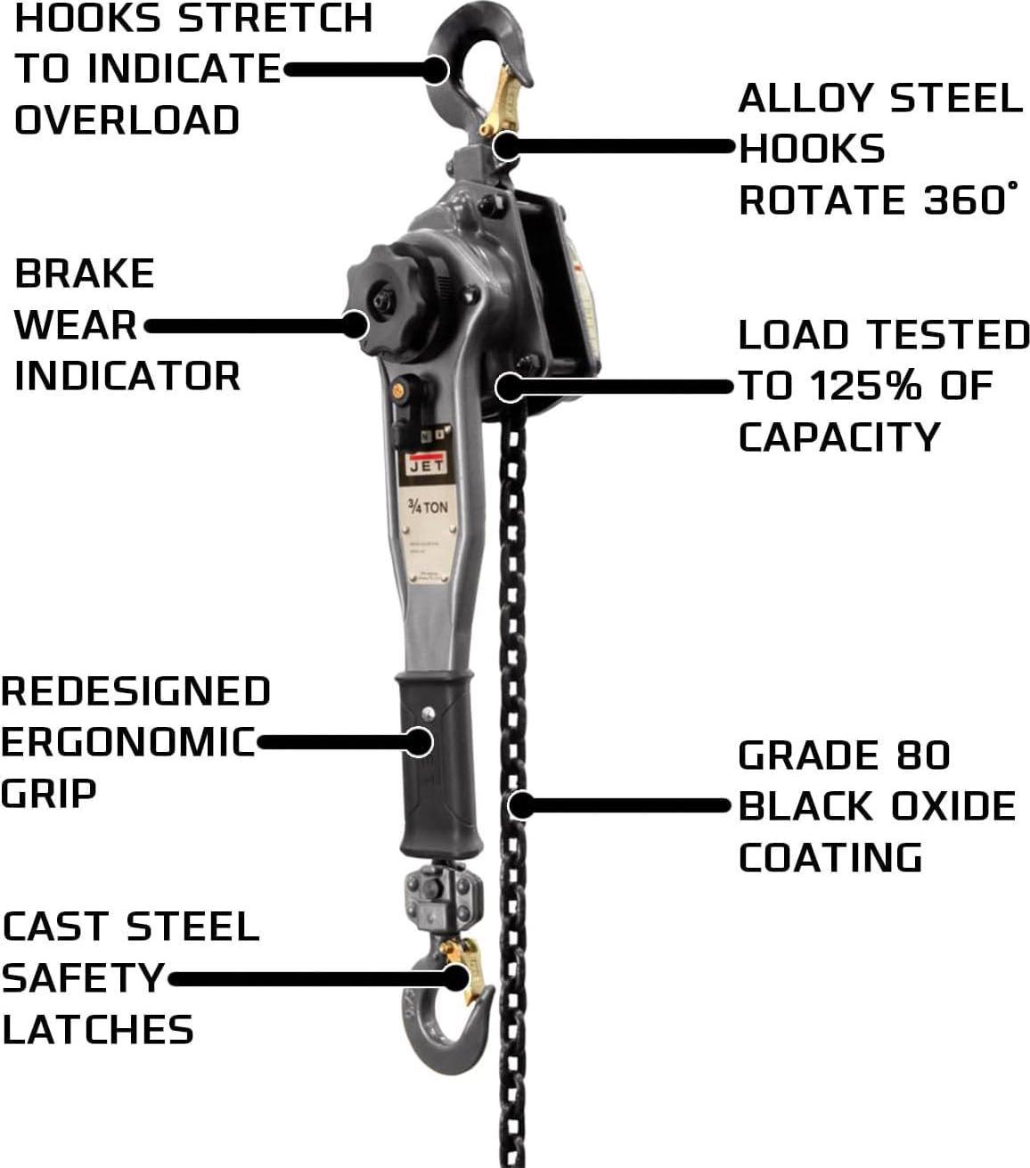 Jet Tools JLP-A Series 3/4 Ton Capacity Puller Hoist 15 Ft Lift with Hooks