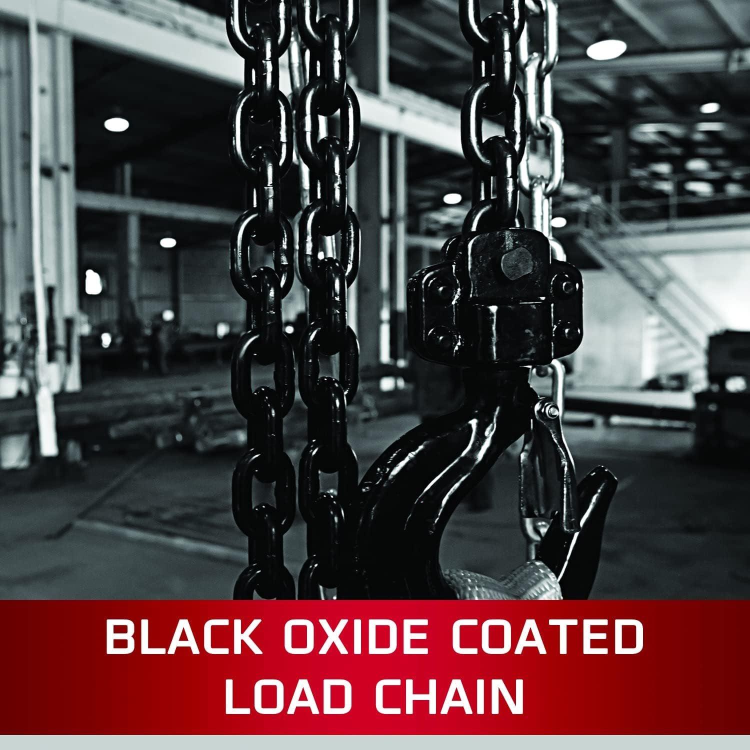– Industrial rated alloy steel hooks rotate 360 degrees for easy rigging