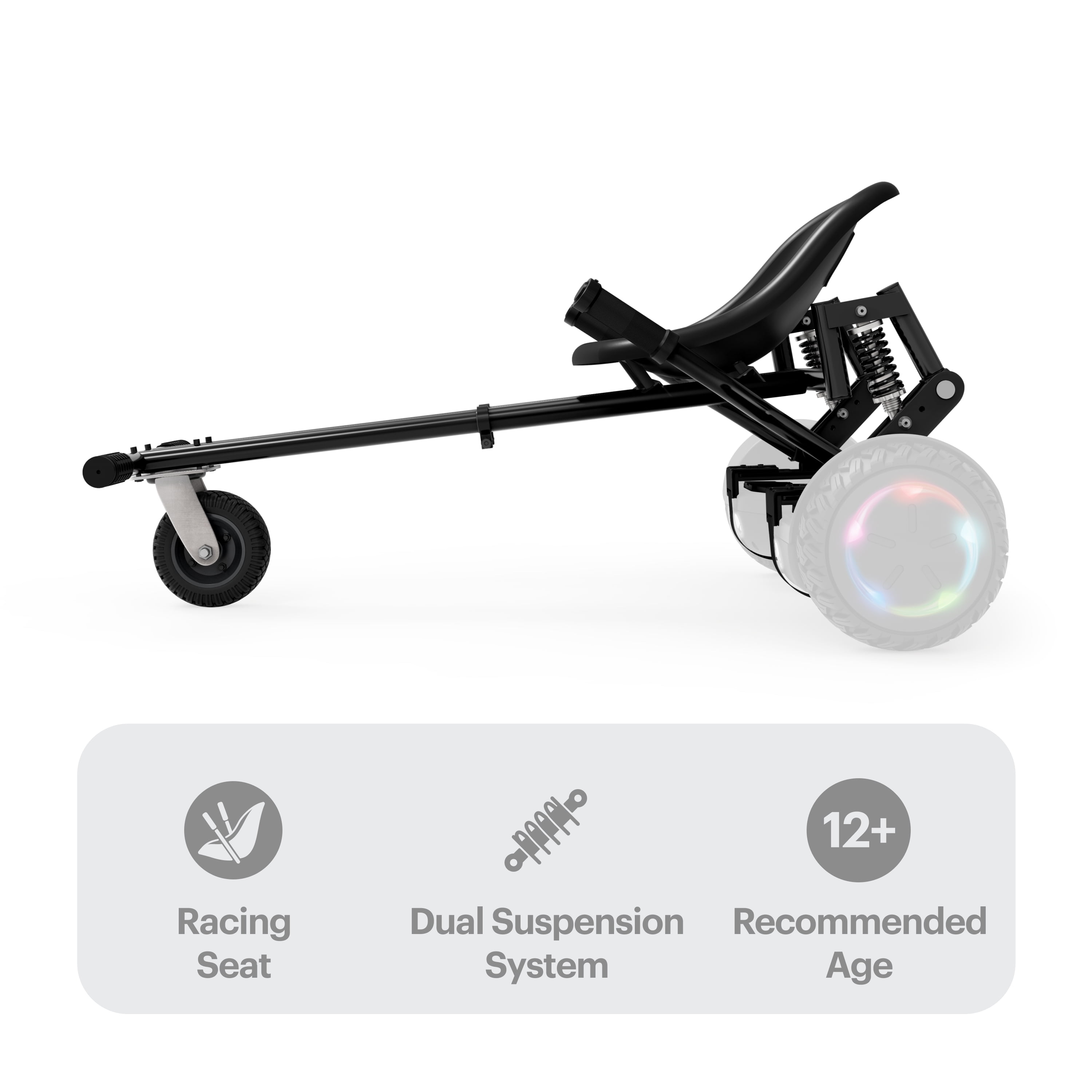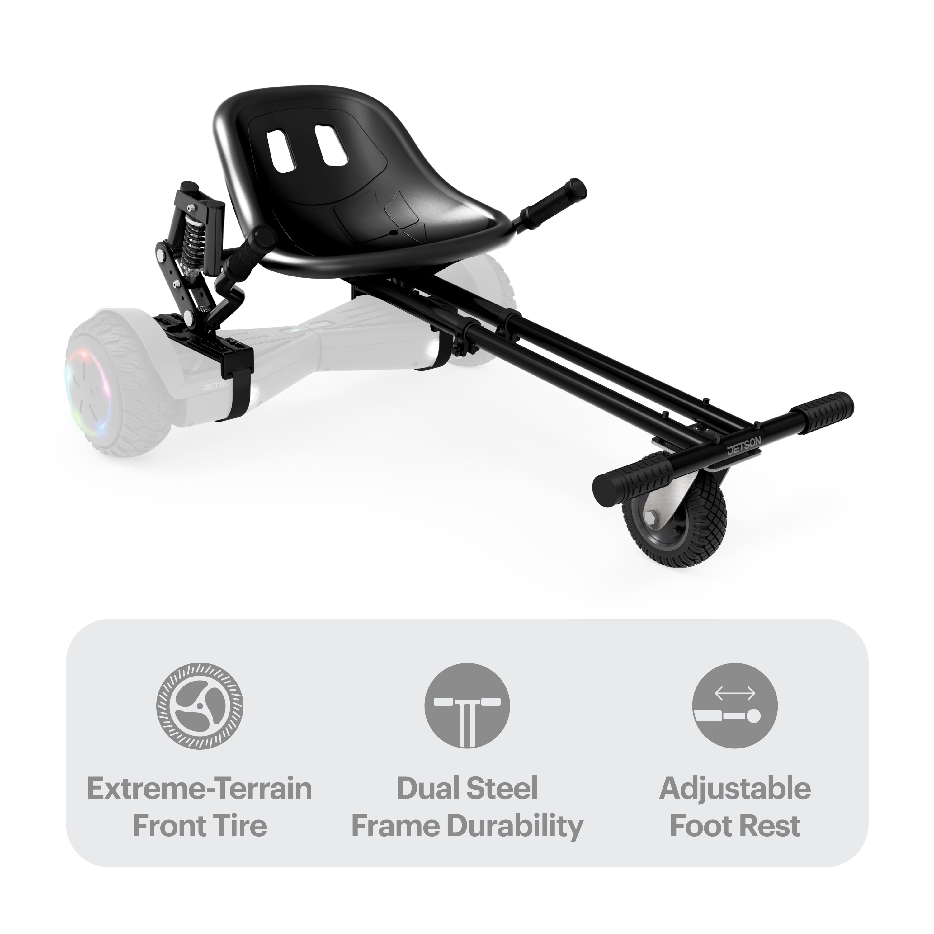 Ready to go: Transform your hoverboard into a racing go-kart with this universal attachment that fits most hoverboards (6.5” – 10”) Attachable: Attach the Jetkart 2.0 to your hoverboard using the adjustable brackets and Velcro straps Race Ready: Cut corners and zoom around with complete control using the easy steer handles and rubber grips Ride On: The length of the foot rest is adjustable to accommodate most heights Perfect for teens