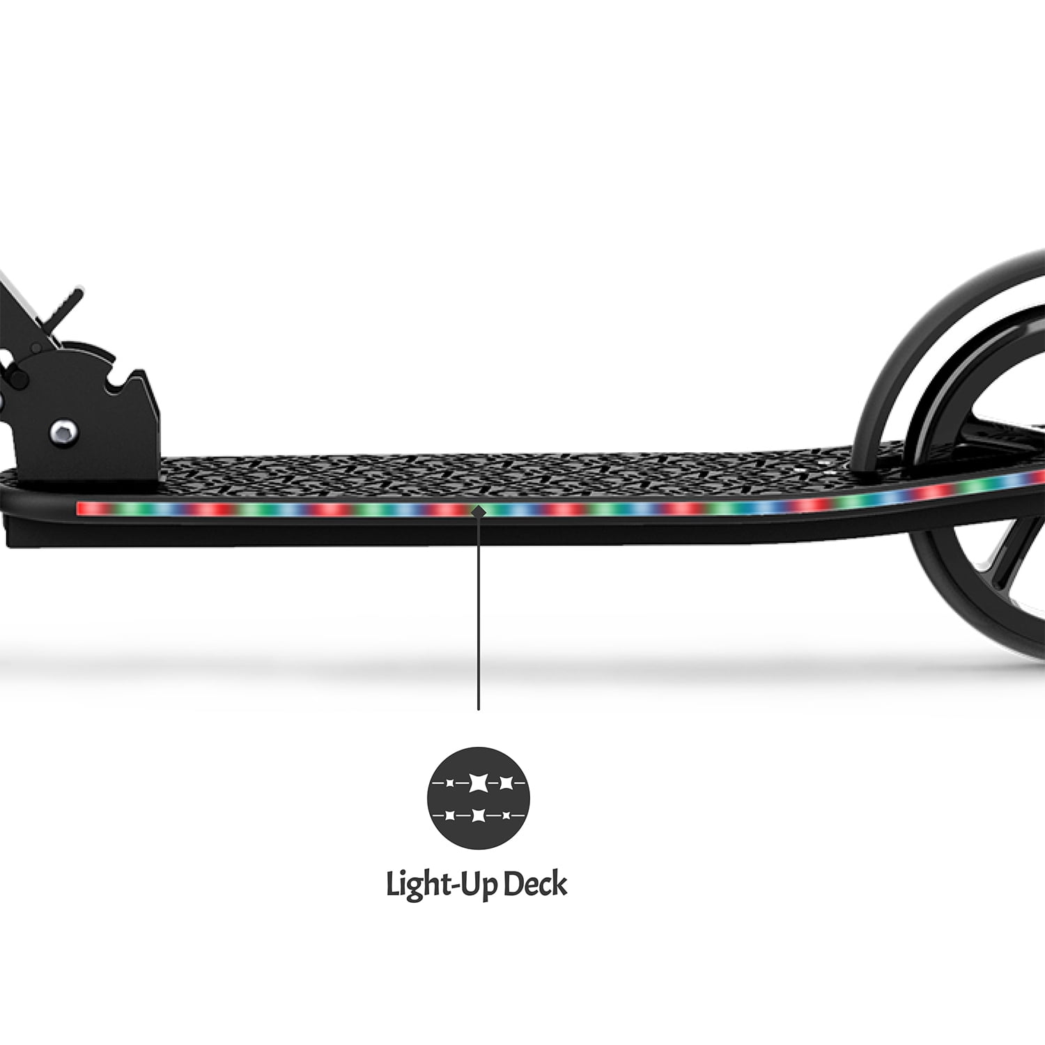 This is the perfect choice of ride for preteens or young teens who have outgrown their kid’s scooters and are ready for something a little bolder. With over 100 LED lights on the handlebar, stem, and deck, this is one ride that really will light up the neighborhood with a personality as colorful as yours. In addition, the Jetson Jupiter Jumbo 2-Wheel Scooter in black comes preprogrammed with seven light patterns so you can wow your friends.