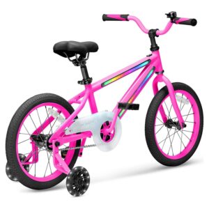 Light-up kids bike that comes with three different light modes and can be lit up in 7 different colors – (red, dark blue, green, yellow, pink, purple, and light blue)
