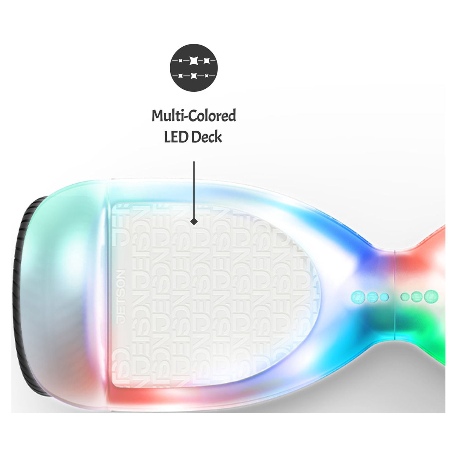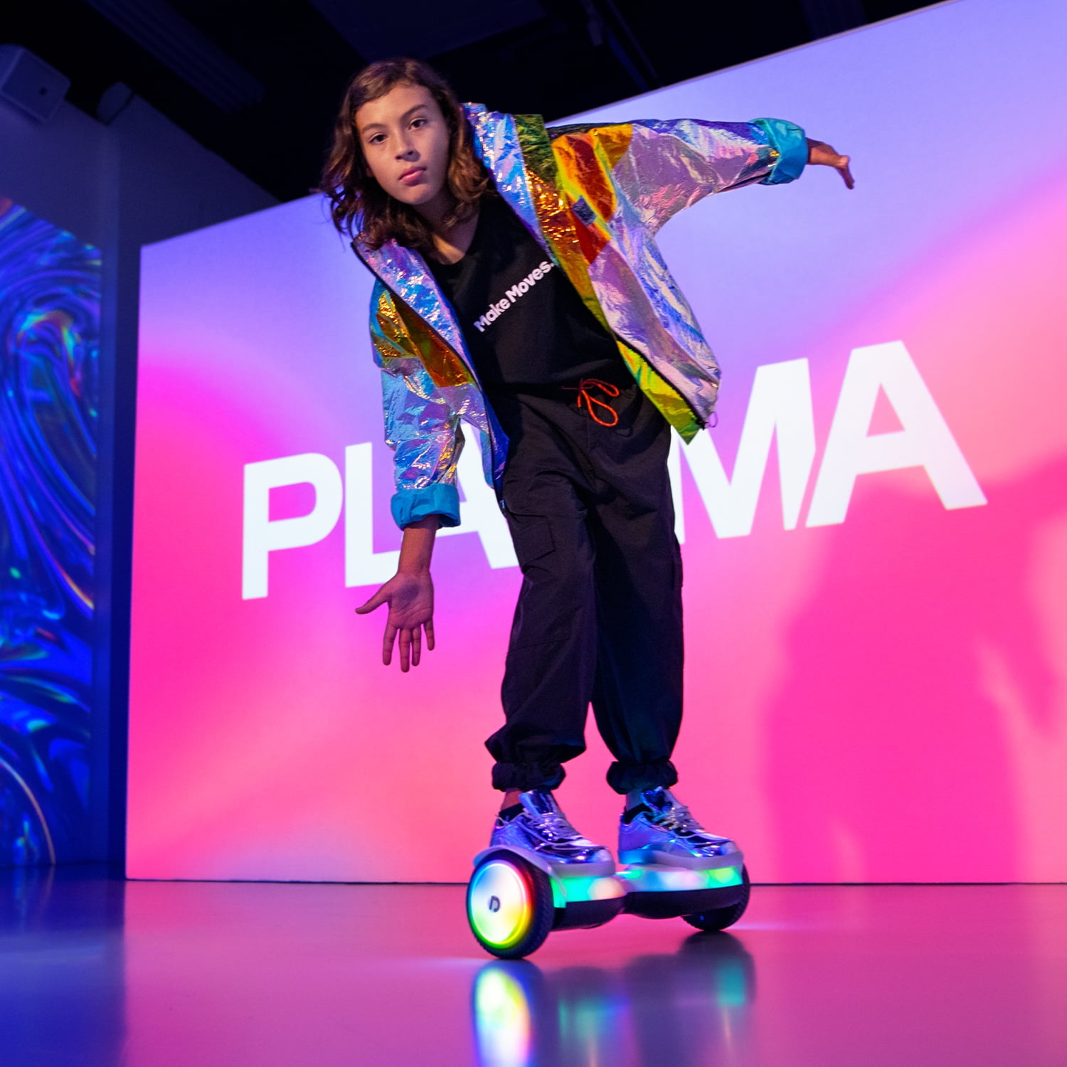 Light up your world with the all new Jetson Plasma Illuminated Hoverboard. LED liquid light pattern flows through the deck and wheels while you ride. It comes equipped with all-terrain tires and an anti-slip grip mat, so you can show off your hoverboard skills and explore more of your world than ever before!