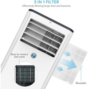 – PORTABLE WITH WHEELS: Forget the hassle and commitment of installation – this easily portable and compact AC provides the ability to move around from room to room with easy-roll casters and side handles.