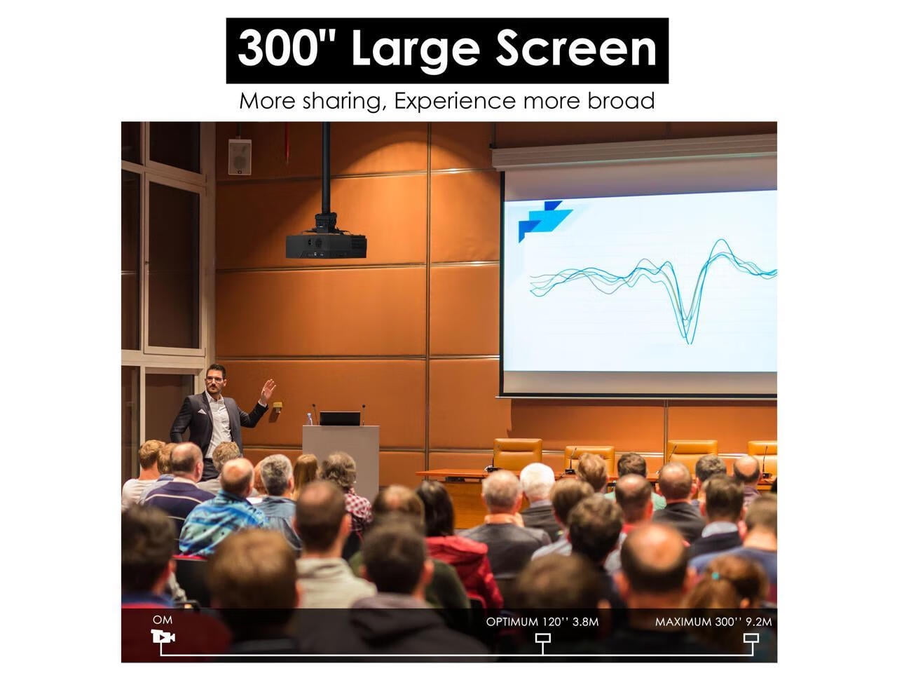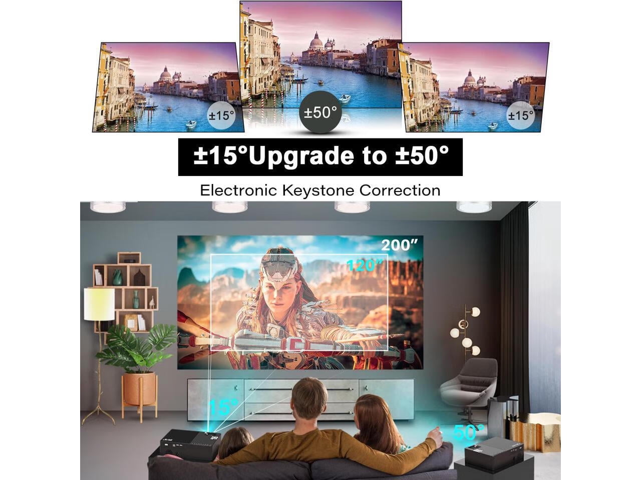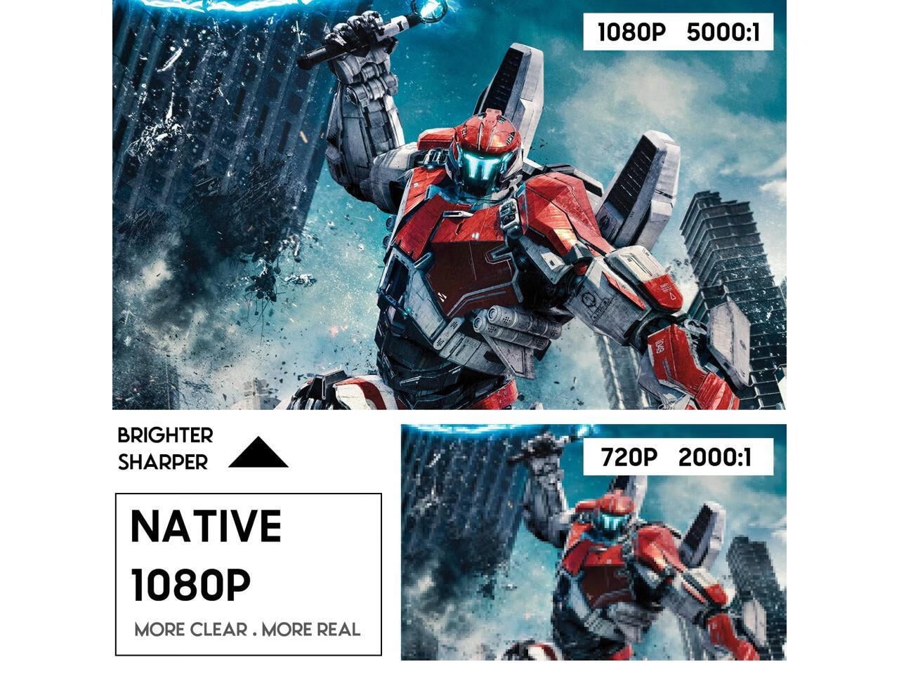 [NATIVE RESOLUTION OF FULL HD 1920×1080] – M18 Upgraded With native resolution of 1920*1080 and contrast ratio of 5000:1.Resolution support: 576i, 576p, 720i, 720p, 1080i,1080p. [BUILT-IN U1 BLUETOOTH TRANSMITTER] – In 2022, M18 has a built-in USB Bluetooth transmitter function. Let you enjoy music anytime, anywhere. The USB Bluetooth transmitter can also be suitable for car and outdoor travel. [UPGRADE BRIGHTER AND CLEARER] – Upgrade from 4500 Lux to 8000 Lux Light source brightness, with real color 16777K. It provides you with more stunning images and videos. [CONVENIENT UPGRADE And LOW POWER CONSUMPTION] – We have upgraded the electronic keystone correction from manual ±15° to electronic ±50°.M18 allows you to use a shorter distance to project a larger screen, and it can be placed in a corner. [VERSATILE MULTIMEDIA CONNECTIVITY] – HD projector supports HDMI*2/ USB*2/SD/AV/VGA/ AUDIO OUT. USB can easily connect to mobile phones for screen mirror and multi-screen broadcas