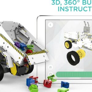 – Includes 410 snap-together parts, 2 smooth motion robotic servo motors, 2 DC motors, 1 Ultrasonic Sensor & RBG light, 1 main control box. USB cable and quick start guide included.