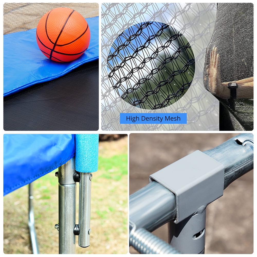 【Quality Assurance】Our children’s trampoline has been tested many times in the factory and strictly checked by the quality inspection department. To ensure its safety and stability. We will also provide you with 100% satisfaction and worry-free after-sales service. No matter you have any questions, you can always contact us. We will solve all problems for you. 【Stable Frame Structure and Safety Protection】Our trampoline is made of galvanized steel pipe, 60 high-pressure springs, PP jumping mat, PE spring cover cushion, UV resistant safety net made of PE and other accessories production. The 6FT high safety net and three U-Legs improve the stability of the trampoline. The gap between the mat and the safety net is removed by the combination of the fully covered protective net and the galvanized steel pipe, which improves the safety. 【High Flexibility and Scalability】The waterproof jumping mat of PP material and 60 high-pressure springs make our trampoline more resilient and flexible. The high-density waterproof jump mat is not easy to break. The spring has no deformation after 150,000 times of extreme extension experiments. Has high elasticity and high anti-aging ability. You can use it with confidence. 【Easy to Install】We attached the detailed installation procedure diagram, the installation is simple and clear. If you encounter any installation problems during the installation, please click “contact seller” and contact me in time. I will try my best to help you. 【Best Gift for Your Kids】Kid’s trampoline can help children maintain healthy exercise, growth, and enhance their balance. The bearing capacity of the kid’s trampoline up to 661lbs. Can accommodate 3-4 kids at the same time. You can take care of your work while the children are jumping happily on the trampoline, because our trampoline will protect your children’s safety. You can also spend time with your children to play games on the trampoline to enhance parent-child relationship. Features: Jump mat: made of high-density PP material, not easy to break, strong elasticity and flexibility. Spring: High-pressure spring, with good anti-aging ability. After 150,000 times of extreme extension experiment, there is no deformation. Very flexible and scalable. Spring cover pad: made of PE material, very durable and can be used for a long time. Safety net: made of PE material, anti-UV, thick grid lines, strong bearing capacity. It can be easily accessed through the zipper and double lock closure to protect your child from falling off the trampoline and getting injured. Material: galvanized steel pipe frame and ladder, galvanized anti-rust material, prolong the service life. The inclined ladder is convenient for children to get up and down safely. The 3 U-legs can support the trampoline well and keep it stable. Product information: 1. Product name: Kids Trampoline 2. Package Size:63.8*19.3*9.1 inch 3.Maximum Weight Capacity:661 LB or 3-4 kids 4. Product Material: Galvanized steel pipe, PP waterproof jump pad, PE and pearl cotton spring cover, PE safety net. Packing List: 1* Instructions, 1* ladder, 6* Arc-shaped tube, 6* Up safety pole with EPE tube, 6* Bottom safety pole with EPE tube, 3*U-leg, 60* Spring, 6* Connecting tube, 1* Wrench, 12* Screw and nutsert, 1*Drag hook, 1* Spring cover pad, 1* Safety net, 1* Waterproofjumpingmat.