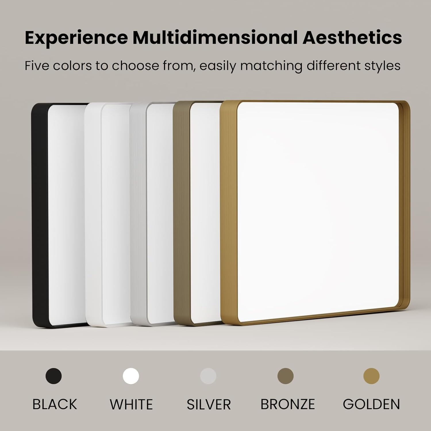 A:The black rectangle mirror is made of high quality aluminum alloy. The metal frame is 1.2″depth and 0.2″ thickness.