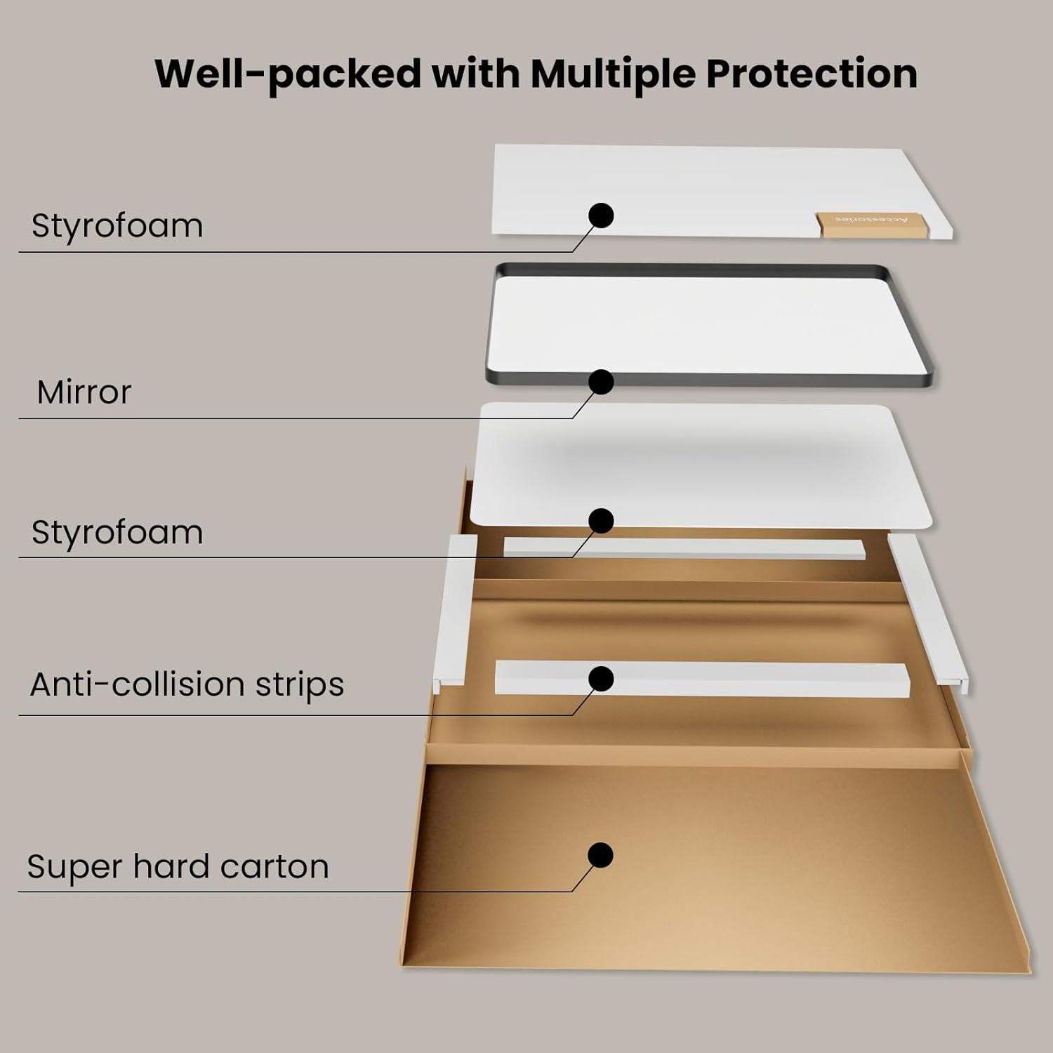 A:All JISOSO matte black mirror for bathroom is built with 4MM tempered glass which is shatter-proof, burst-proof and more safer to use.
