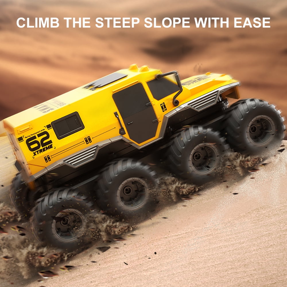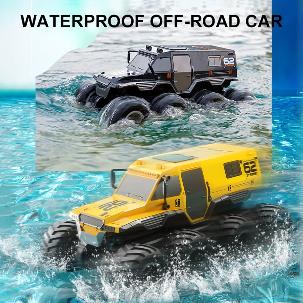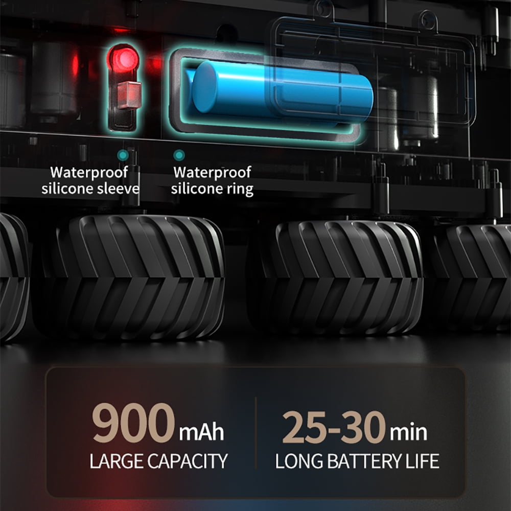This is an all-around amphibious off-road vehicle that can do things that ordinary RC cars can’t do, very cool and fun. This off-road RC car uses 8WD design, with strong power and excellent shock absorption, it can overcome all kinds of terrain such as sand, snow, grass, highway and so on, which is perfect for kids to play outdoors. Sealed waterproof design, it can work well even in swimming pools and lakes. The remote control amphibious buggy is made of high quality ABS material and non-toxic PVC, safe and durable. The package comes with two 7.4V 900mAh rechargeable batteries, each battery can support 25-30 minutes of play time, allowing you to enjoy the thrilling driving fun! This amphibious RC car is an ideal gift for kids and adults for birthdays, Christmas, New Year and other occasions.