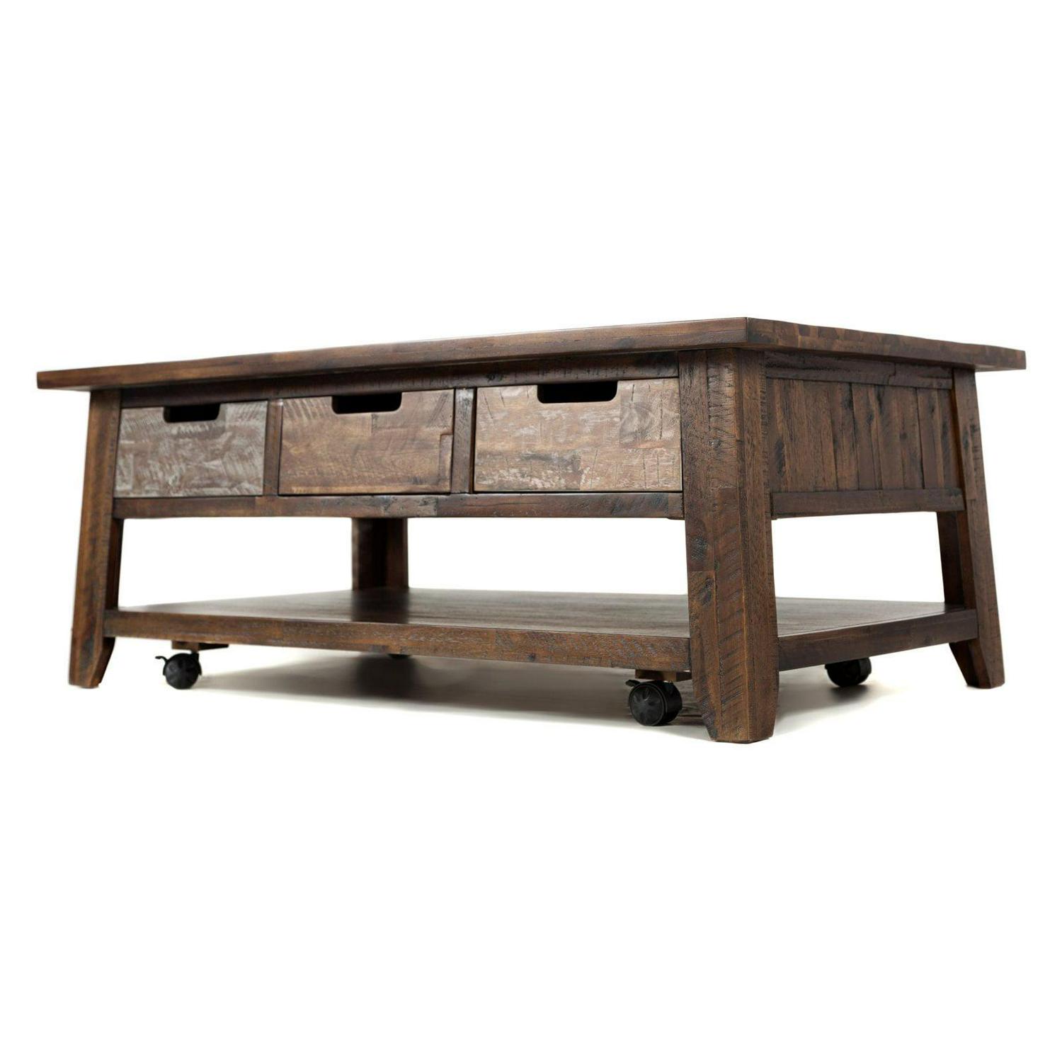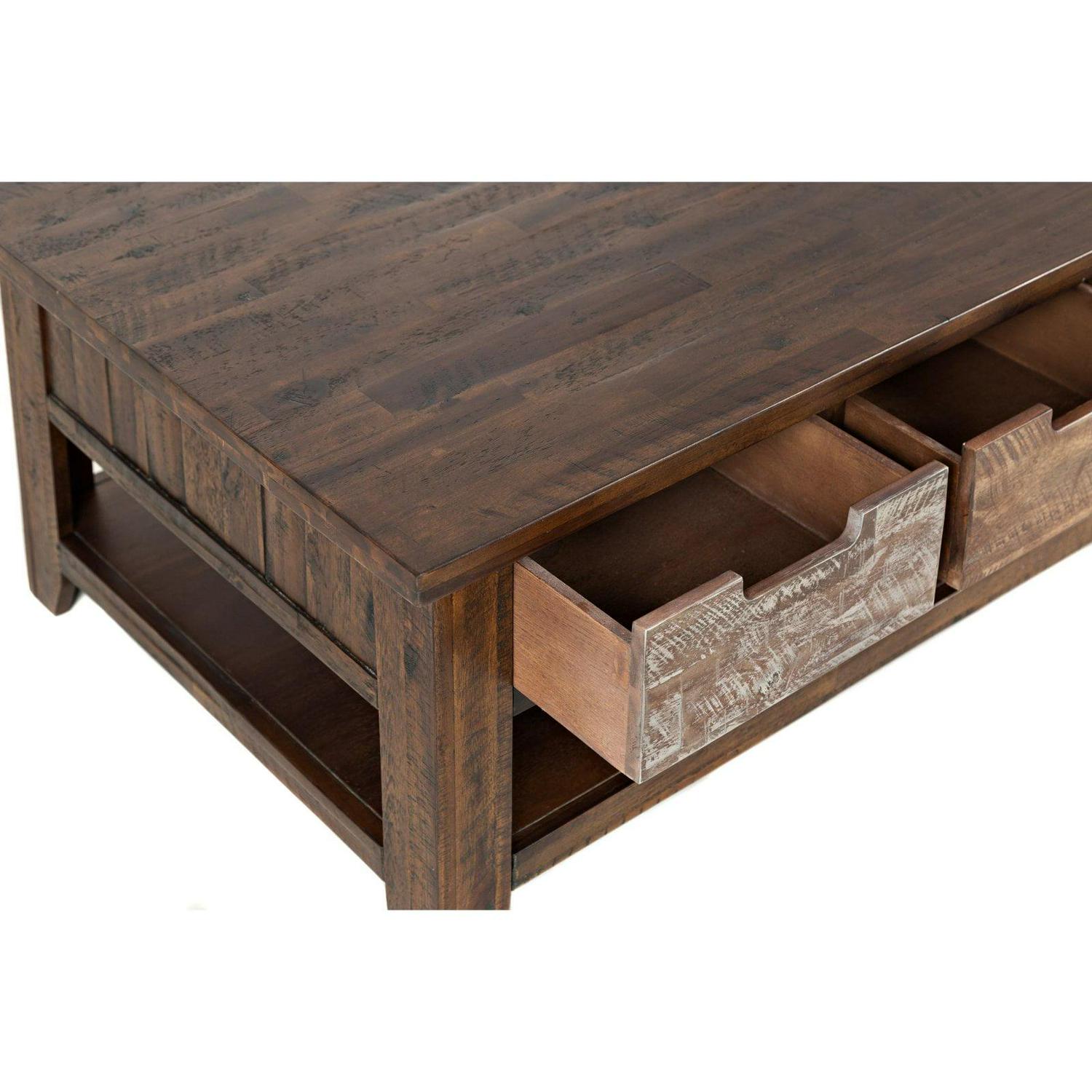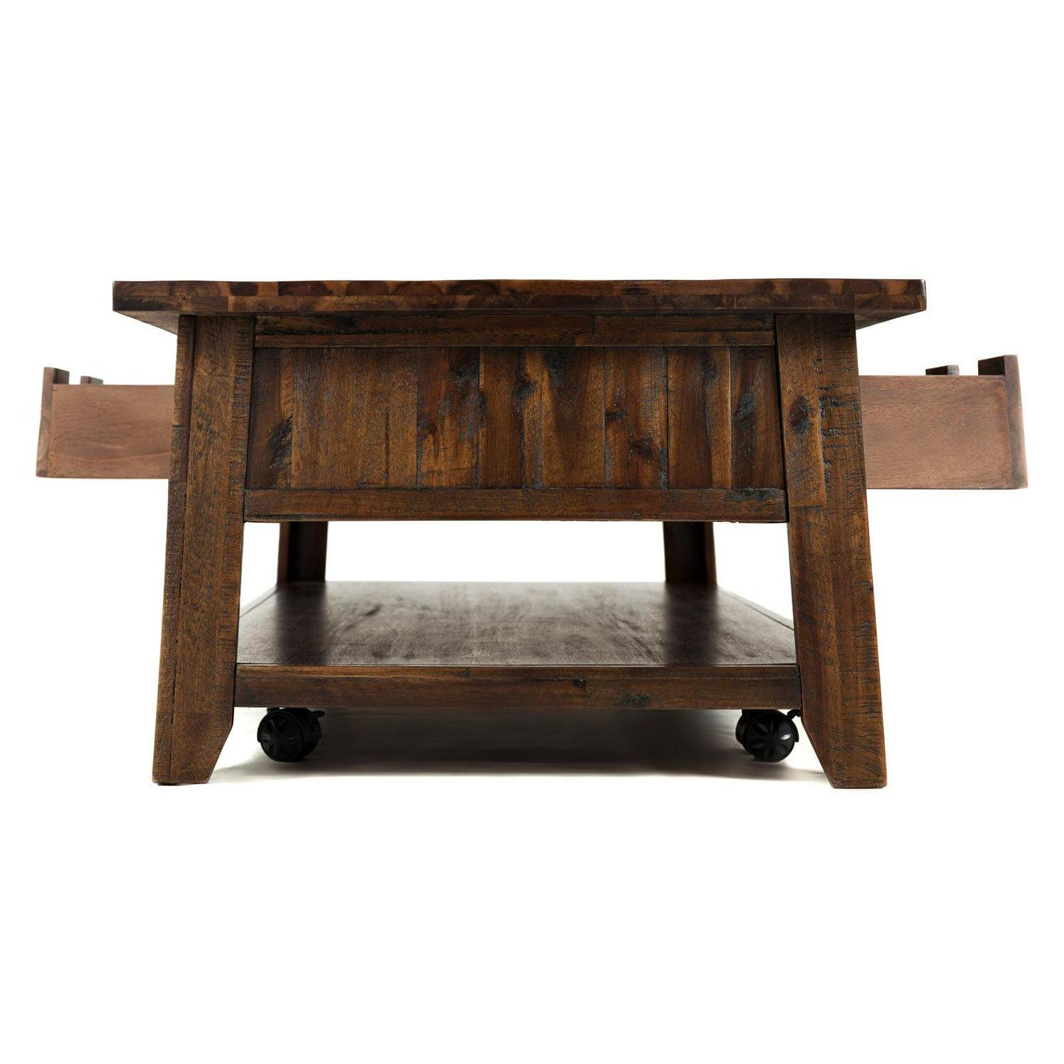 Jofran Painted Canyon Rustic Solid Acacia 50 Coffee Table with Pull Through Drawers and Caster Wheels