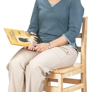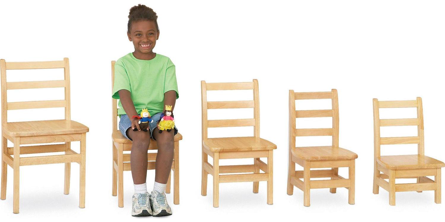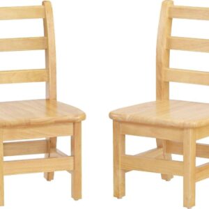 Encourage good posture with these solid Ladderback chairs. Rails are properly spaced for child safety. Hard rubber feet reduce noise and prevent scratching. Contains two 10″ chairs.