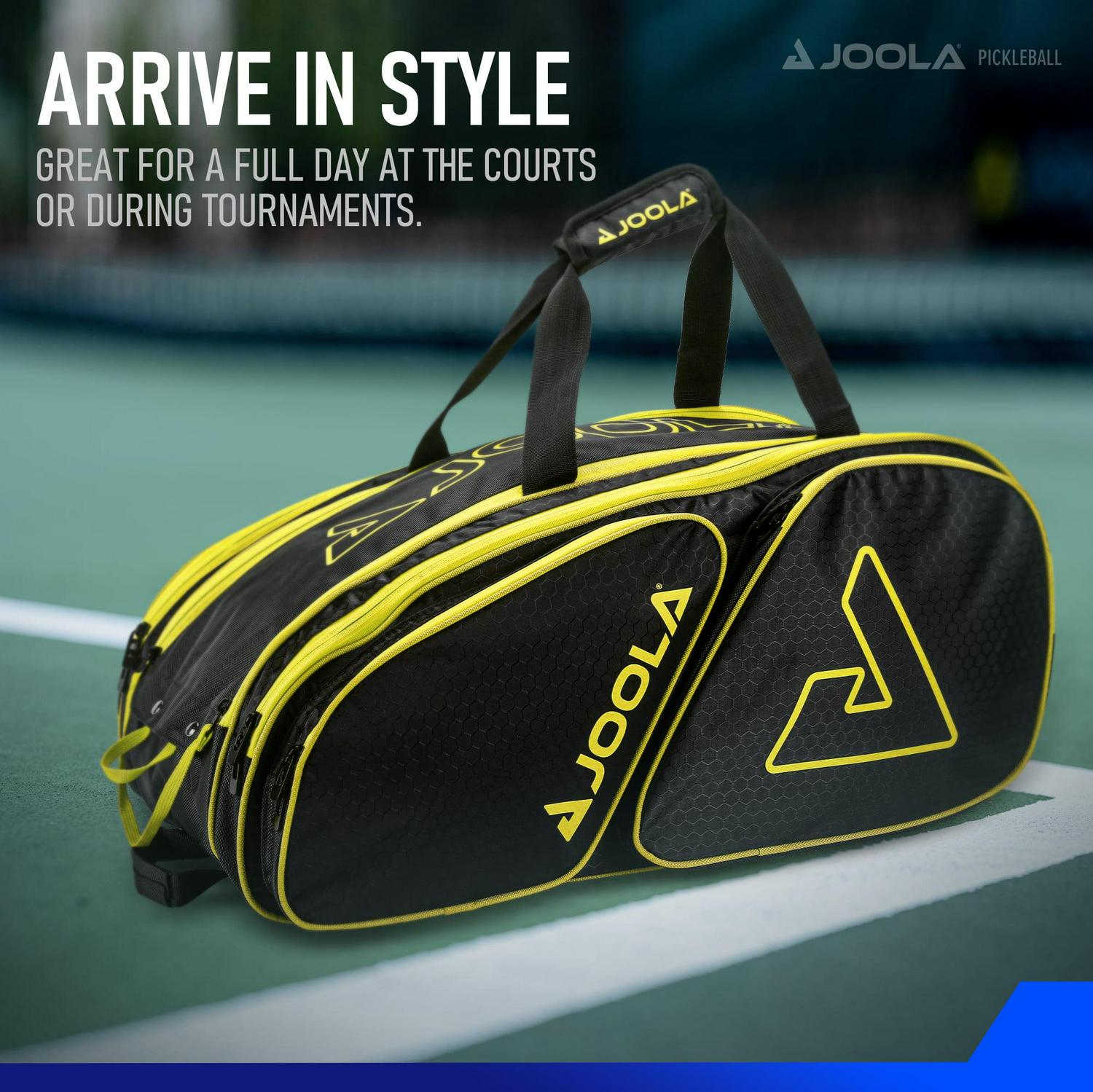 JOOLA Tour Elite Pickleball Bag, Backpack, Duffle Bag for Pickleball and Racket Sports, Black/Yellow