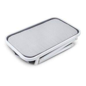 The Coo folds down flat and stores in its carrying bag when not in use in just two easy steps no need to remove the mattress.