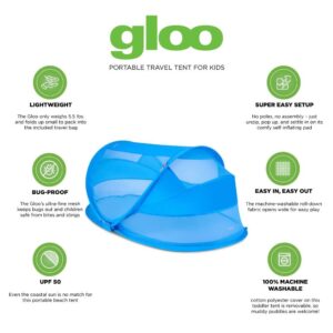 – UPF 50 CANOPY keeps children safe in the shade. The Regular Gloo comes with a zippered mesh opening, and the Large Gloo comes with a two layer mesh and roll-down fabric shade opening