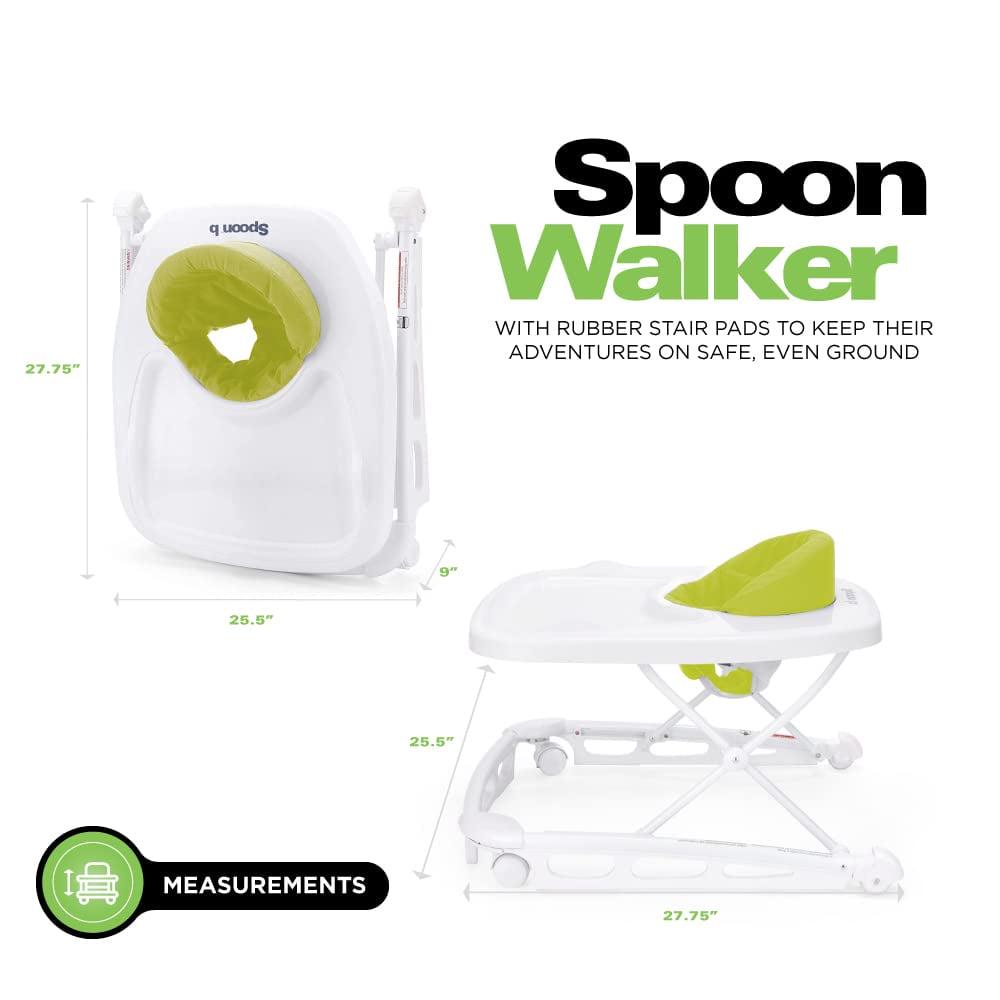 – FLAT-FOLD DESIGN makes this activity center easy to store. Once folded, the Spoon Walker Activity Center measures just 9 wide