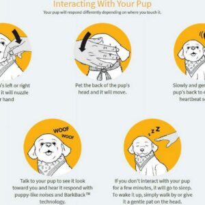 Companion Pet Pup features state of the art technology that makes them appear lifelike! Built-in sensors create a personalized experience by responding to presence, voice, and touch, and BarkBack response technology enables two-way audible interaction. Features a soothing heartbeat and breathing you can feel, as well as movements that mimic real pups, like a head turn toward your touch and the sound of your voice. Authentic high quality puppy sound effects. Audio off mode allows for enjoyment without sounds. The soft, premium coat and style are inspired by real life puppies!