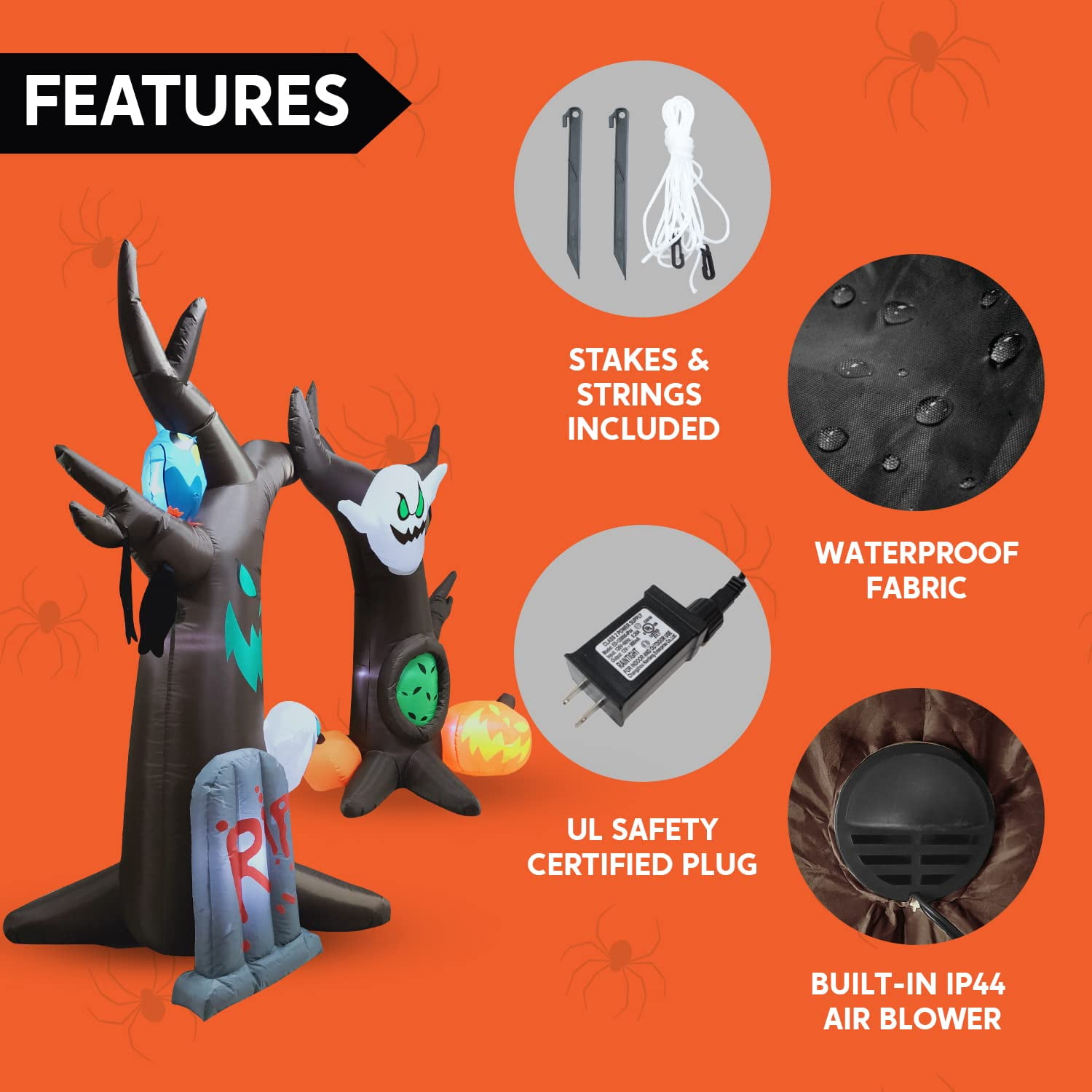 8 FT Tall Halloween Inflatable Scary Tree Archway with Build-in LEDs Inflatable Ghost Pumpkin Tomb Blow Up Inflatables for Halloween Party Indoor,Outdoor,Yard,Garden,Lawn Decorations.Perfect for Halloween outdoor yard garden decorations,trick or treat event decoration,Halloween night event,Halloween haunted house decorations,Halloween costume party decorations and more. Note: SYNCFUN is a sub-brand belonging to Joiedomi.