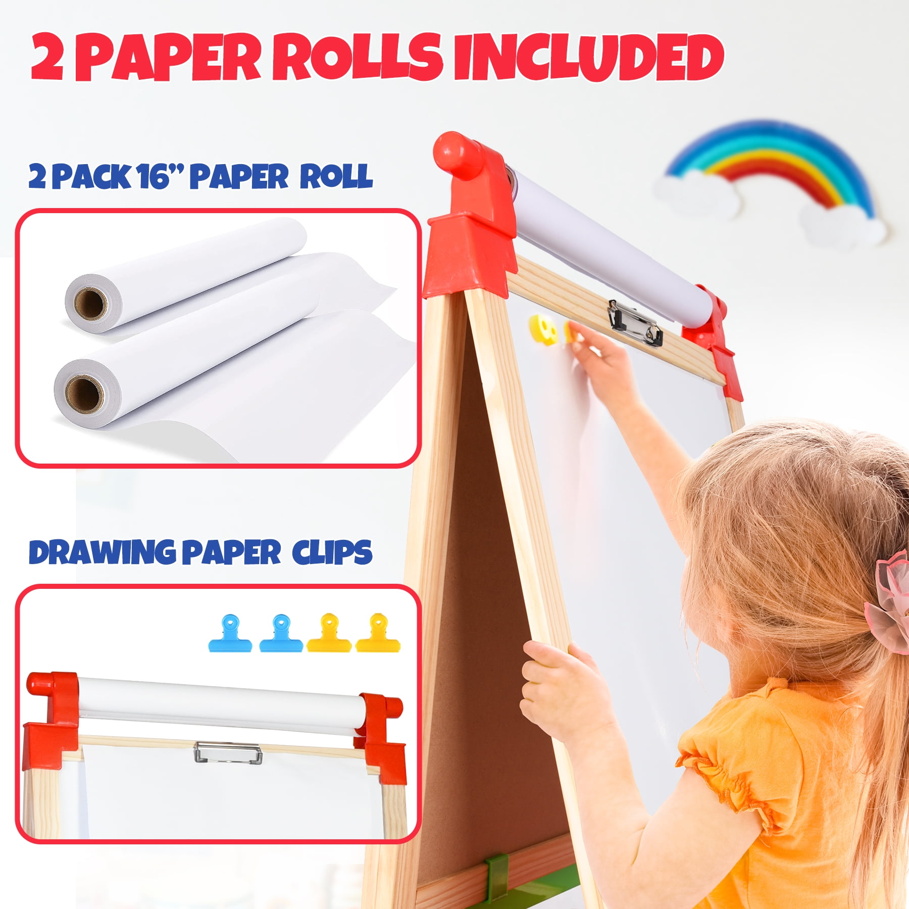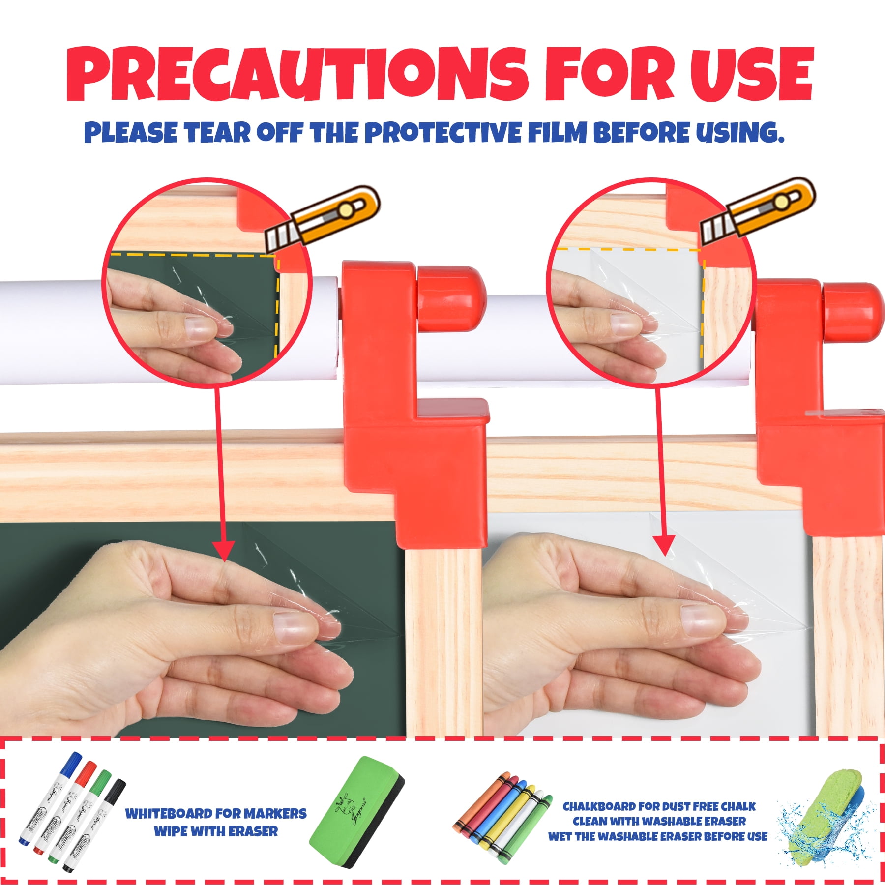 【IDEAL TO INSPIRE CREATIVITY LEARNING 】This kid’s easel provides hours of creative activity, like painting, coloring, drawing, lettering and math games etc., which is both enjoyable and educational. Widely application for Family Education, School Enlightenment, Training Class, Summer Camp, Parent-child activity etc. 【3 IN 1 WOODEN EASEL】Our painting easel come with 3 drawing panels, magnetic whiteboard allows used by marker pens , magnetic blackboard allows used by chalk, and it can also be used by pulling down the top paper roll. With 3 kind of writing surfaces for choice, let our kids express their creativity fully play. 【ADJUSTABLE HEIGHT EASEL STAND】The height of the wood easel can be adjusted from 38″ to 50″(no tool required), and the board size is 19.3″ x 18.5″, which is used for 3 to 12 years old children.The height of easel can be adjusted according to different ages of kids. It means that you only need one easel for kids to be sufficient for them from kindergarten to elementary school. 【SAFETY & STURDY MAGNETIC EASEL】Our child art easel is compliance with international standards testing. Which made of high-quality and natural wood, the edges of easel board were all polished and the inverted corners were also rounded to avoid abrasion and bumps. Everything is for the safety of kids. 【AlL IN ONE KID’S ART EASEL ACCESSORIES】 Child’s painting easel comes with deluxe 100+ art supplies, including 2 paper rolls, 6 paint pots, 14 brushes & 1 palette set, 1 art apron, 1 box of chalk, 4 whiteboard markers, 1 whiteboard eraser, 1 washable eraser, 4 drawing cups, a set of colorful magnetic letters and math, meeting the needs of your little artist’s drawing and learning.