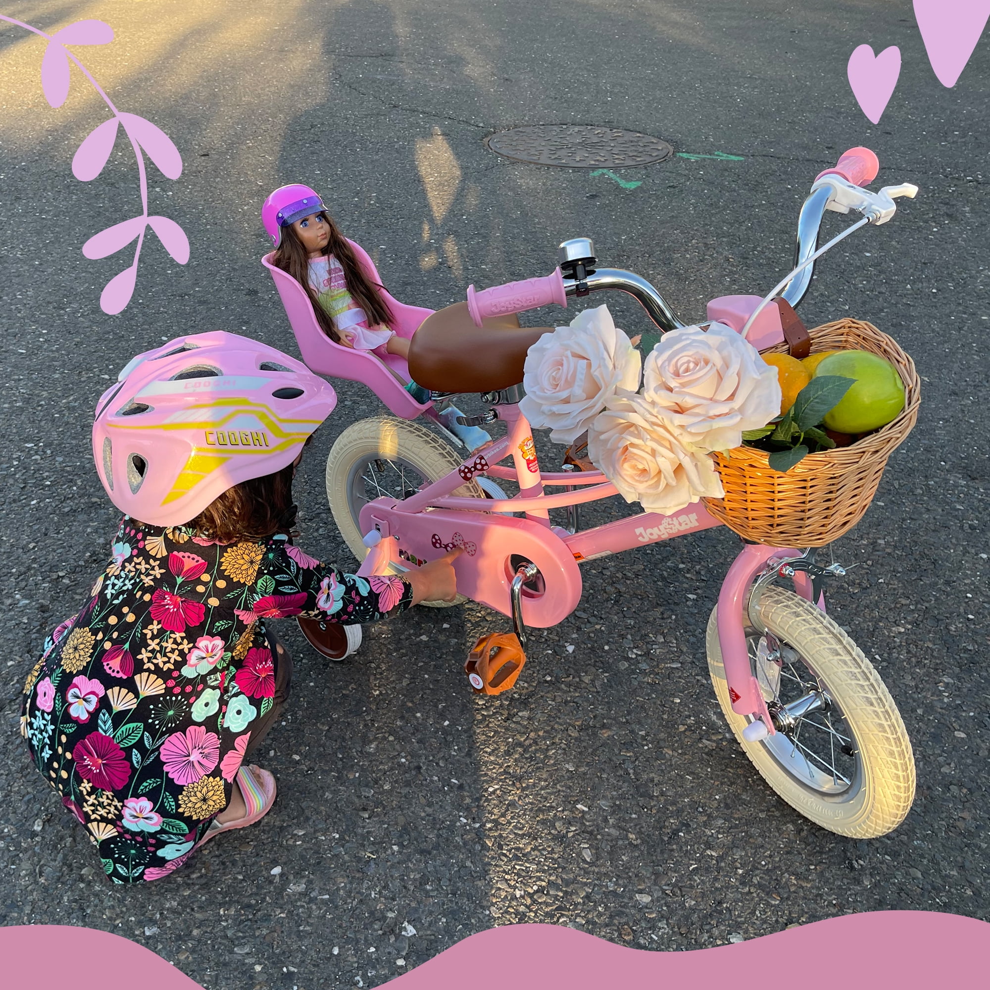 - 1, Retro Design and Colors! JOYSTAR Fantasy Princess Girls bike with bright colors, stylish and charming. DIY decals and beautiful basket add extra fun to the ride. Soft seat offers more comfort in riding.