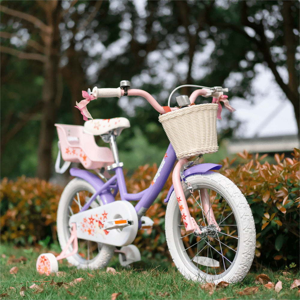 Stunning Design: JOYSTAR Girls Bike showcases a bright, charming colors, DIY decals, basket, and doll seat for a magical ride. Adjustable saddle & stem ensure a custom fit for easy pedaling. Unmatched Safety: Dual brakes (hand caliper & coaster/foot), wide 2.125″ pneumatic tires, steel frame & crank, non-slip pedals, enclosed chainguard, and multiple reflectors provide superior protection. Effortless Riding Experience: JOYSTAR smooth bottom bracket gearing, efficient brake lever, removable training wheels, single-speed simplicity, and soft seat ensure comfort and control for young riders. Quick & Easy Assembly: 85% pre-assembled; attach front tire, seat, and training wheels using included tools and user-friendly instructions. Backed by a LIFETIME WARRANTY from JOYSTAR. Perfect Fit for Every Child: Available in 12″ (2-4 yrs, 33-41″), 14″ (3-5 yrs, 35-47″), and 18″ (5-8 yrs, 45-57″) sizes. Consult our size chart based on your child’s height to find the ideal JOYSTAR Kids Bike.