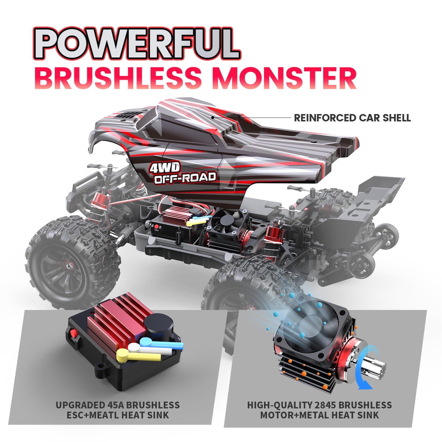 JoyStone Brushless High Speed RC Monster Truck, Max 45+mph , 1:16 RC Car All Terrain Off-Road Hobby Grade Remote Control Vehicle for Adults Boys, 2 Li-PO Batteries