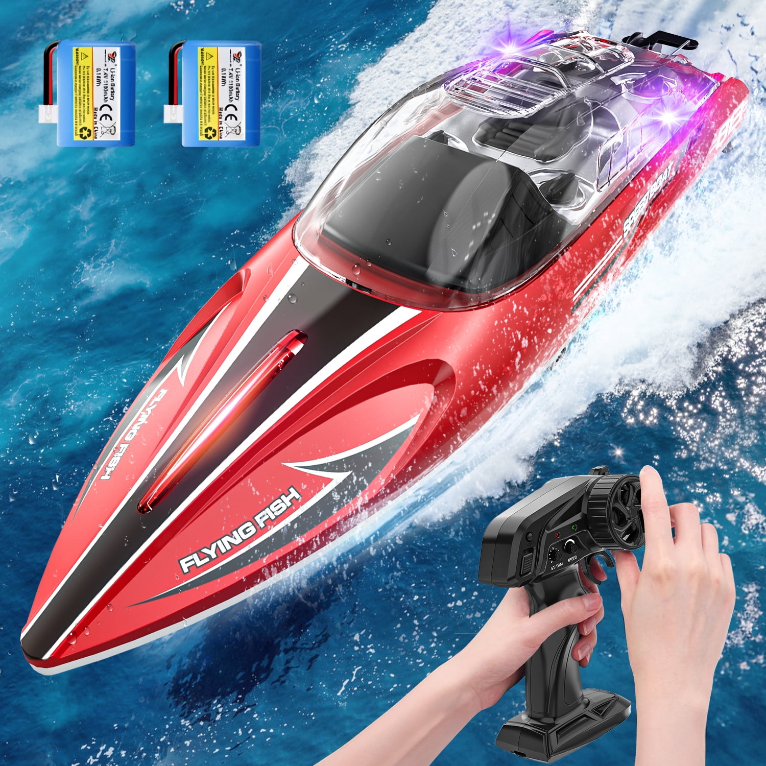 Rechargeable RC Boat – Remote control high-speed boat equipped with remote control, 2 batteries, screwdriver, lock nut, wrench, propeller, support frame, lubricant, USB charger, anti-collision head. High-speed Remote Control Boat – RC boat for adults and kids races across the water up to 25+ mph. This high-speed boat equipped with a 4-channel 2.4 GHz remote with a 150-meter signal range. Low Battery Alarm Function – When your ship with low voltage, the controller will beep to remind you to let the boat ship back immediately since it will keep you from losing control of it. Capsize Recovery Function – Our Remote controlled boat is easy to control. The self-righting design keeps your boat in the correct direction when it capsizes. Double-hatch design and capsize recovery make this the best choice for any level RC enthusiast. Perfect Gifts For Kids And Adults – The velocity high-speed RC boat is one of the hardest and fastest freshwater remote control boats for kids ages 14 and up. NOT for saltwater use.