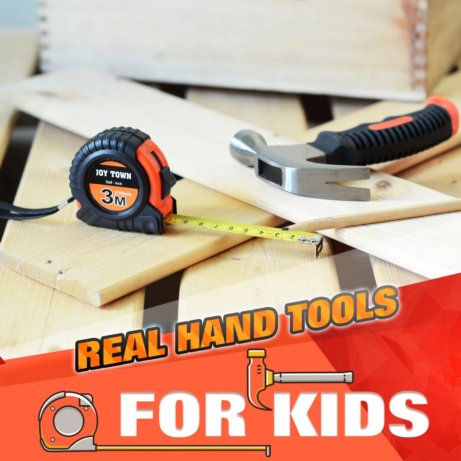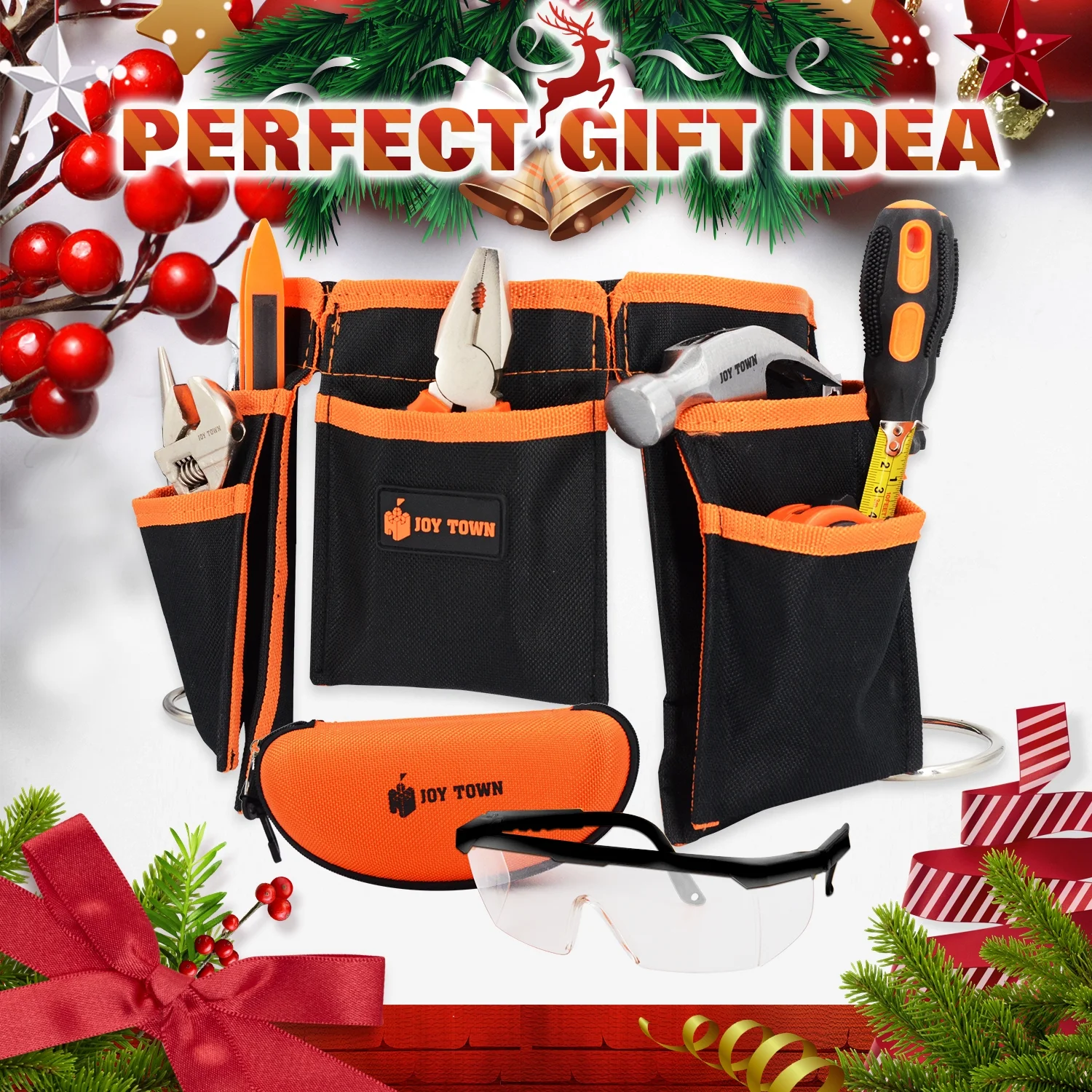 JoyTown Kids Real Tool Set- Junior Steel Forged Tool Kit for Children with Real Hand Tools, Kids Tool Belt, Portable Tool Bag, Perfect Learning Tools for Home DIY, Christmas Gift (Orange & Black)