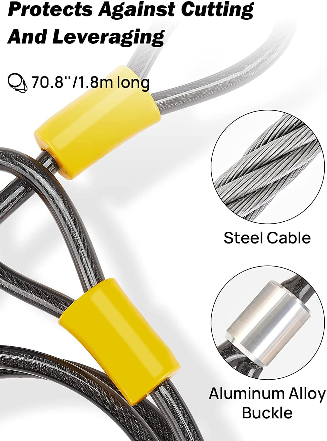 JOYTUTUS Bike U Lock – 14.6mm Heavy Duty U-Lock Bicycle with Shackle and Bicycle Lock Mount Holder + 1800mm Steel Chain Cable Bike Lock, for Gate/Door, Bikes, E-Bikes, Motorcycles, Scooters,2pack Color: Black Safe:A Heavy Duty 14.6mm U-lock that is Durable and Easy to Use plus an 1800mm Cable Lock Type:U Lock for Bicycle,U Lock for E-Bike,U Lock for Motorcycle,U Lock for Scooter Material:Alloy Steel, Plastic Sturdy:This Certified u bike lock is made of plastic on the outside and a 14.6mm hardened high-performance alloy steel cylinder on the inside, which can resist cutting and lever attacks 3.85mm PVC coating:Protects your lock and bike from scratching Steel Cable & Aluminum Alloy Buckle:Protects against cutting and leveraging Suitable for gate/door/bicycles/e-bikes/motorcycles/scooters, etc.