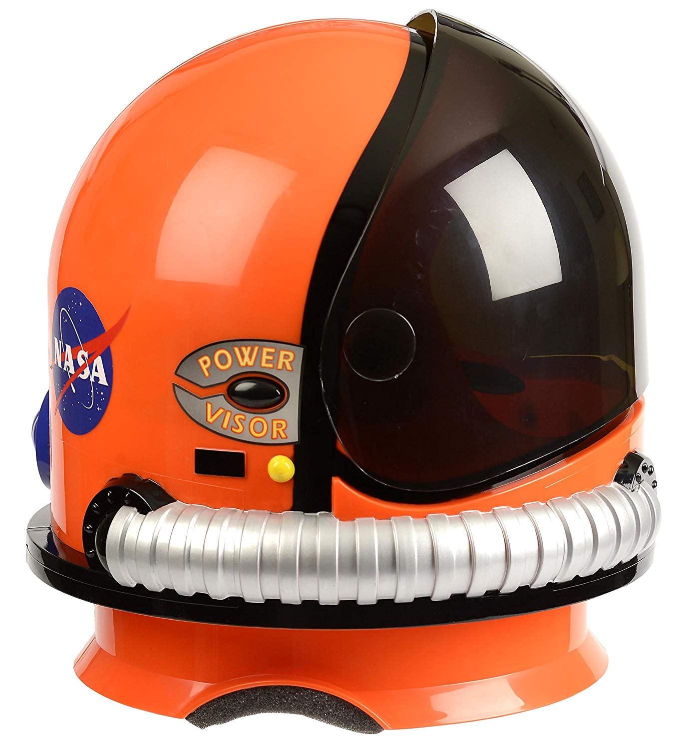 Features High quality construction and amazing details, Don’t be fooled by cheap imitations, Includes, one helmet. Built in sound chip with realistic countdown and blast off sounds. Spring loaded retractable shield. Mock boom microphone for pretend communication. Made from thick durable plastic, and intended for ages 8 and up.Specifications Color: Orange.