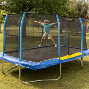 Jumpking Rectangle 10 x 14′ Trampoline, with Enclosure, Blue/Yellow