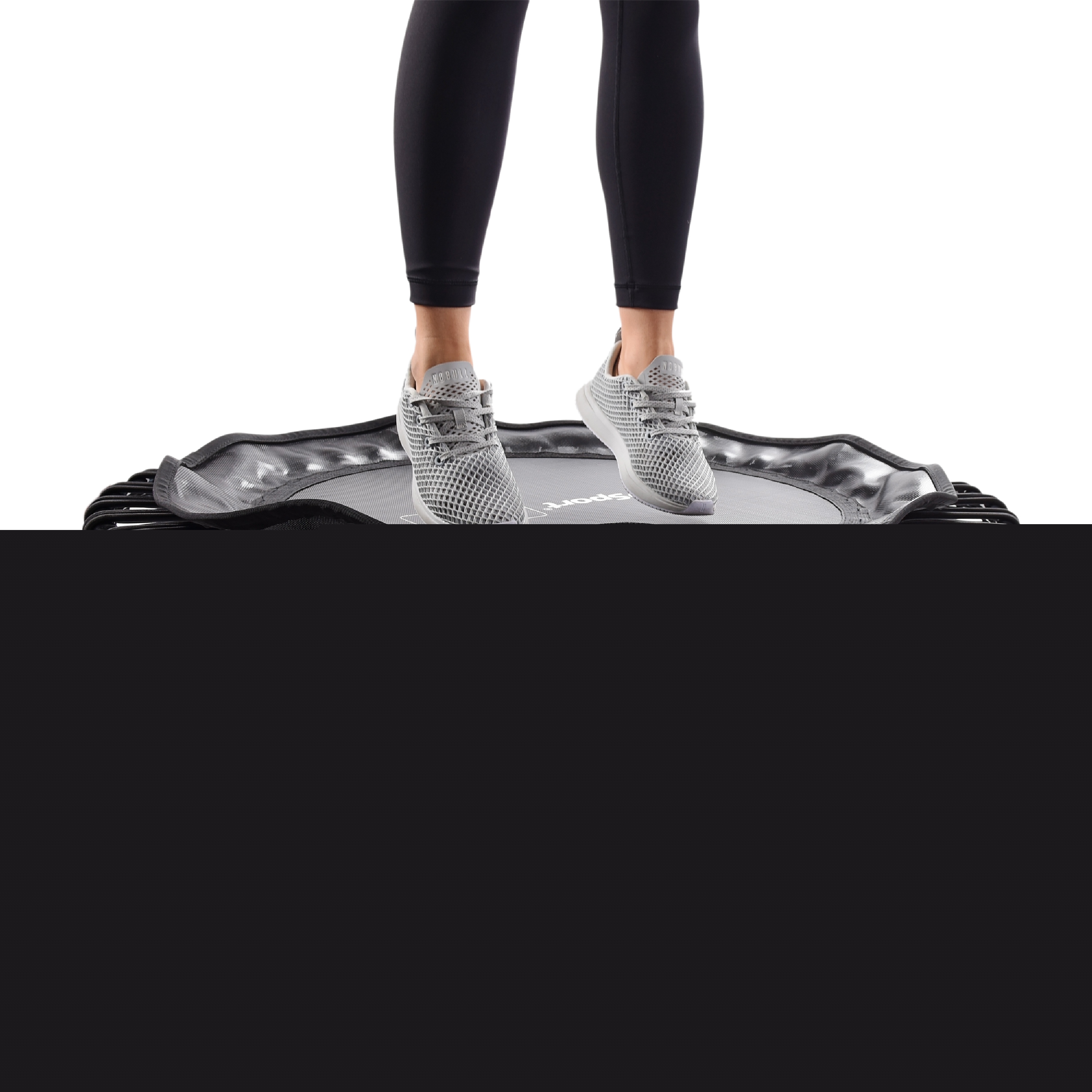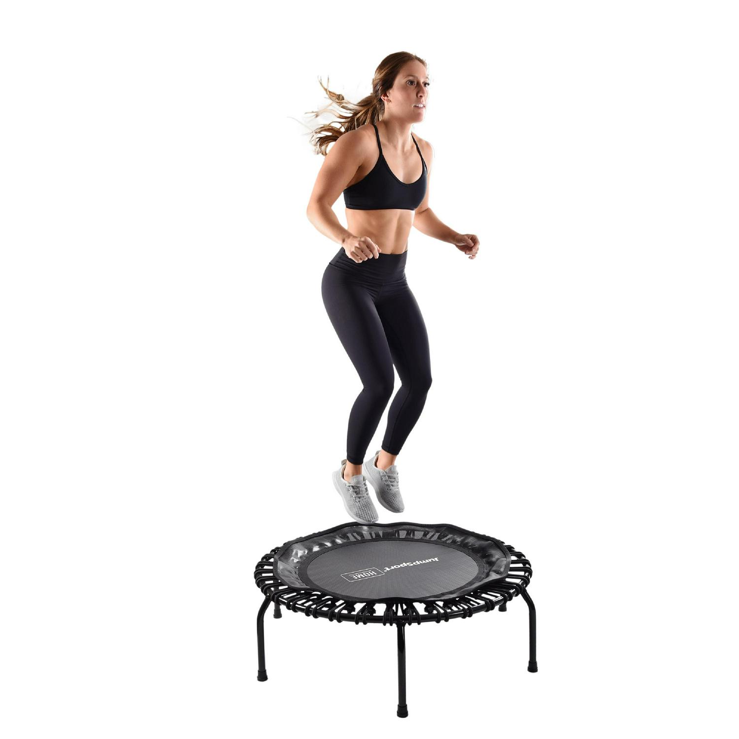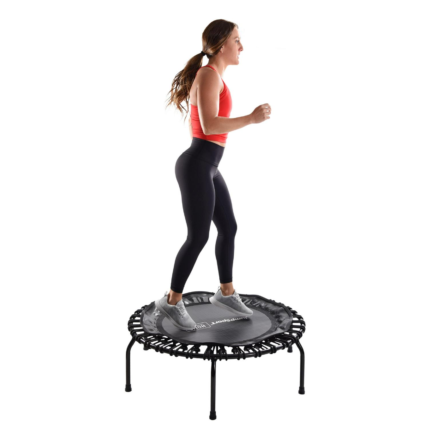 The beginner-oriented JumpSport 105 Home Fitness Trampoline provides efficient, low-impact cardiovascular exercise in the comfort of your own home. The 40 diameter and 36 elastic resistance cords provide a quiet, comfortable and cushioned bounce. This model also includes access to a 30-day trial of Video.JumpSport.com, an all-in-one trampoline workout platform offering barre, dance, circuit, HIIT, PT routines and more. The JumpSport 105 Home Fitness Trampoline delivers the fun, energizing workouts you need to meet any fitness goal.