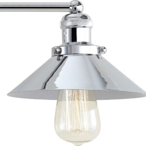 This dynamic design features a metal cone shade that conceals the top half of the bulb — perfect for a polished industrial look. In a shiny chrome finish, this sconce is perfectly at home above a bathroom mirror or as extra lighting in kitchens, where your hardware truly shines. Also available in other single and multi-light configurations, the geometric shape adds elegant interest to any space.