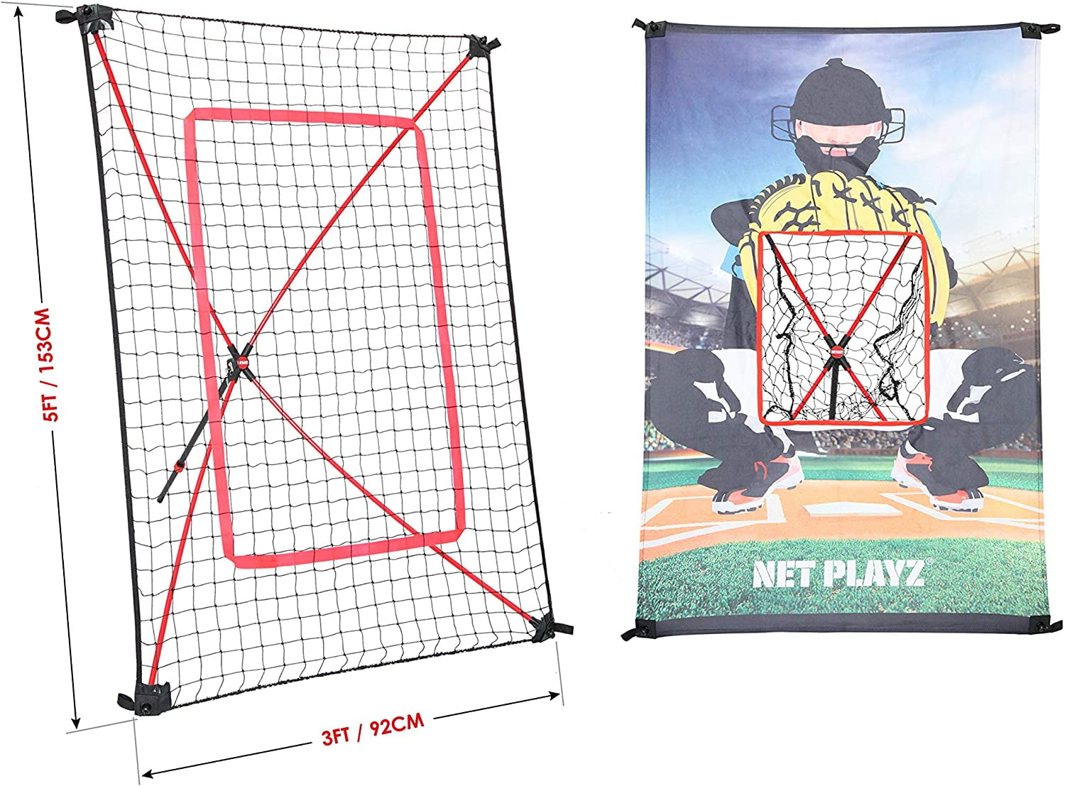 Net Playz 2-in-1 Junior Pitch Trainer Combo is good training partner for youth player. The middle target zone is designed for mental focus and pitching accuracy and target pocket is ideal for easy collecting ball to save time. The rebound net designed to work on passing and catching skills. Easy net fixing, compact size to fit most vehicle, take it to everywhere!