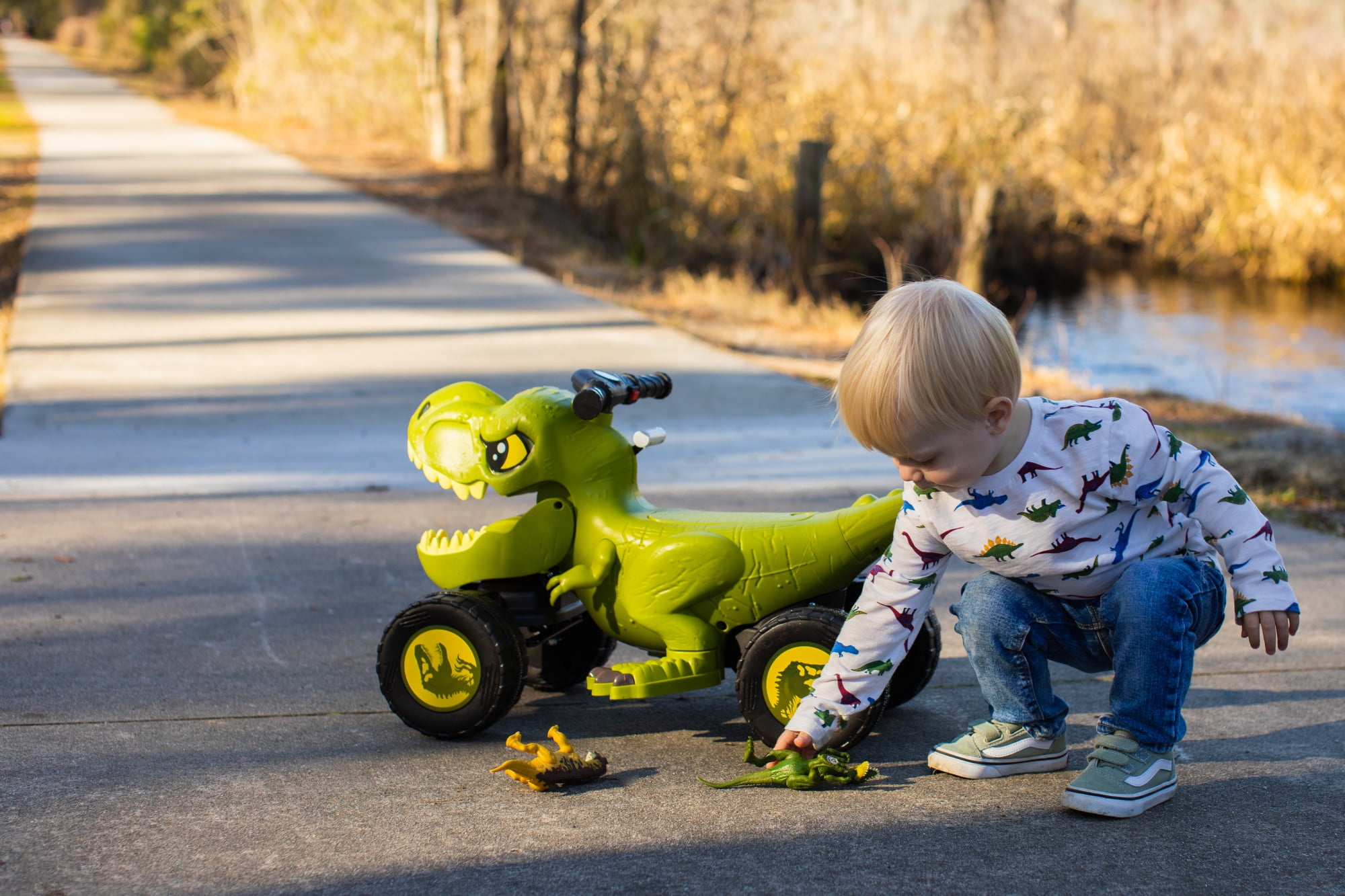 Enter the land of the most iconic dinosaurs on the Jurassic World 6-volt T-Rex Ride-on by Dynacraft. The custom, unisex T-Rex design is cute yet fierce and will inspire hours of play. Your child will feel safe and in control with an easy-to-use push button acceleration on the handlebars. Pull a lever for Interactive play features like a T-Rex chomp action and big dino roar sound effect. With speeds of up to 2MPH and an approachable design, this is a great option for Jurassic World fans ages 18 months to 3 years or under 40 pounds. Your future park ranger will love recreating the exciting action of Jurassic World on the Jurassic World 6-volt T-Rex Ride-on!