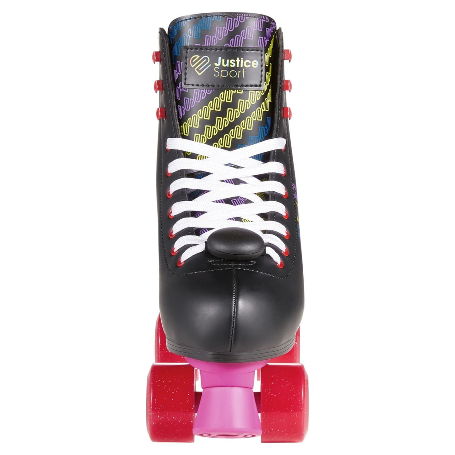 Looking for a stylish and reliable pair of roller skates? Look no further than the Justice Roller Skates! These skates are equipped with metal speed eyelets and hooks, ensuring a snug and secure fit that will keep you comfortable and in control during your skate sessions. Perfect for beginners and novice skaters alike, the Justice Roller Skates feature trucks and cushions designed to guide you through turns and footwork with precision and control, all while sporting a standout style that is sure to turn heads. And with a convenient pull tab, slipping these skates on and off is a breeze. But the Justice Roller Skates aren’t just about looks and comfort. They also feature front brakes that allow for fast and efficient stopping, making them a safe and practical choice for skaters of all skill levels. And best of all, the Justice Quad Roller Skates are the ultimate travel companion, perfect for day-to-day use or for taking on the go. So why wait? Get your groove on and upgrade your skating game with the Justice Roller Skates today! They are ideal for female Teen aged 8 and up.