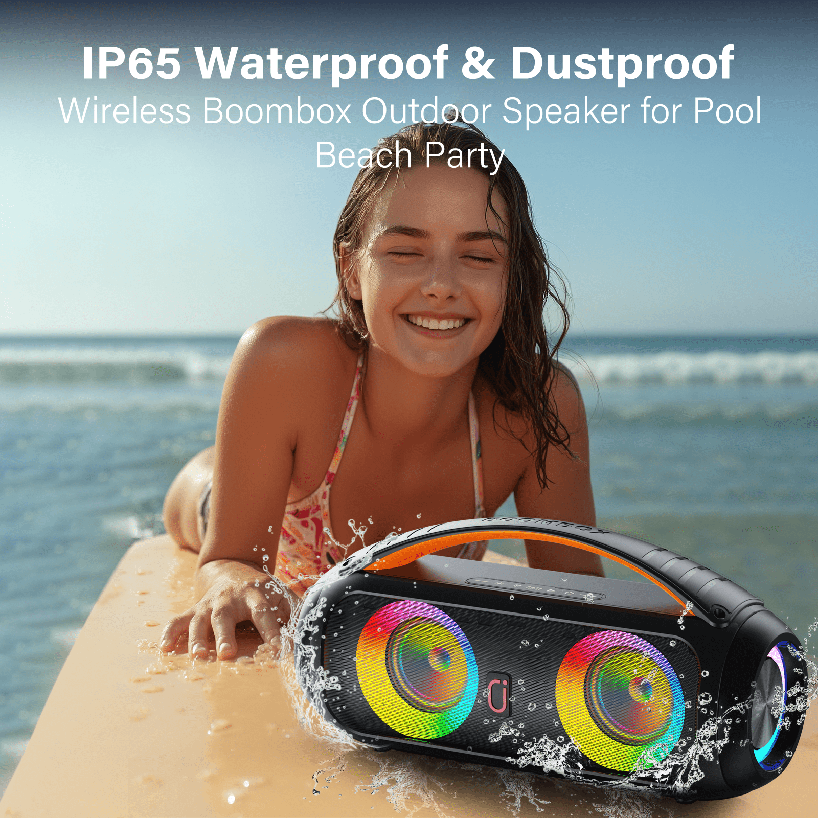 JYX Waterproof Bluetooth Speaker, 40W Stereo Deep Bass, Portable Boombox Party Speaker, Remote Control, D16