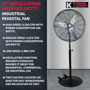 K Tool International KTI77734 30 in. Oscillating Industrial Pedestal Fan