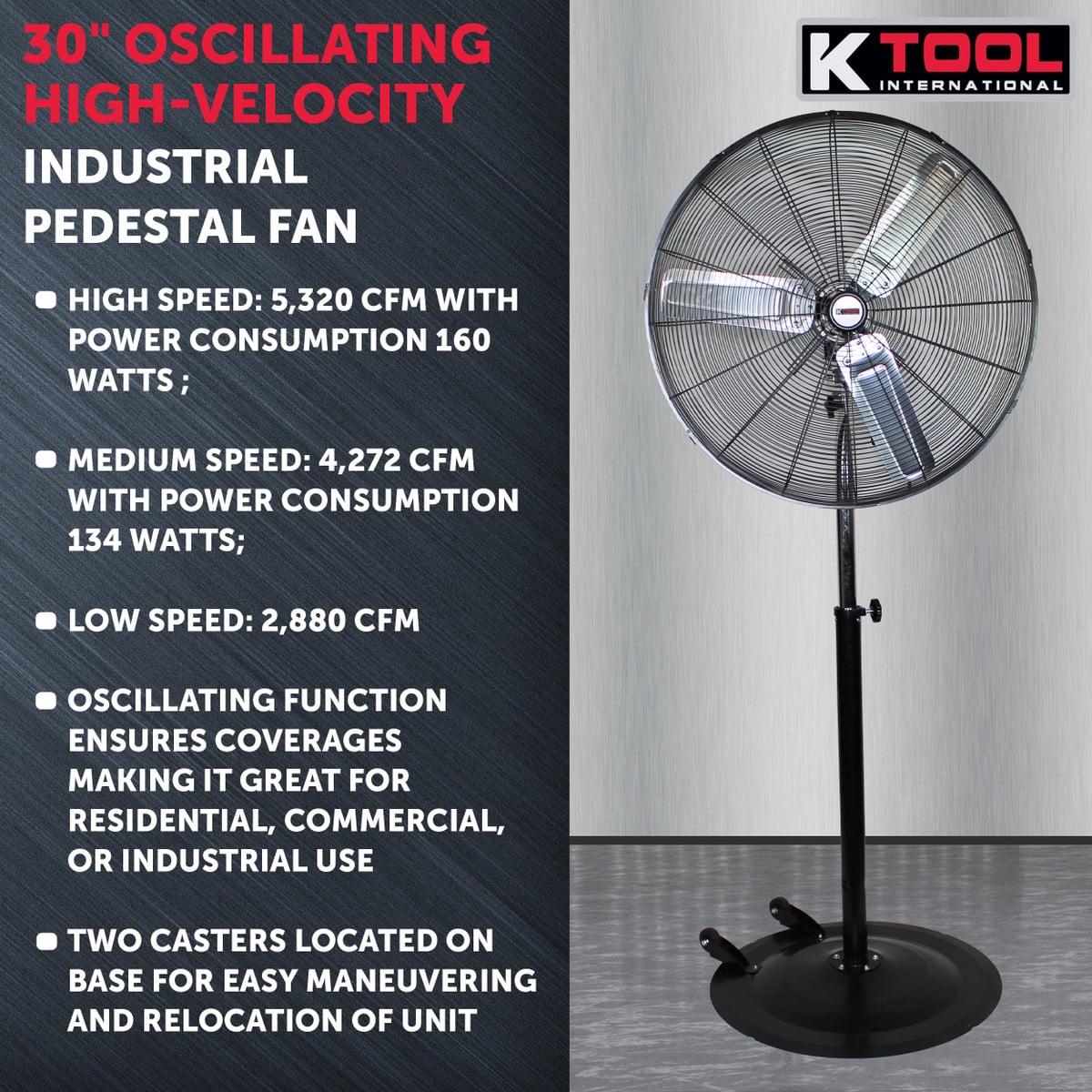 – SKU: ISN120423K Tool International KTI77734 30 in. Oscillating Industrial Pedestal Fan