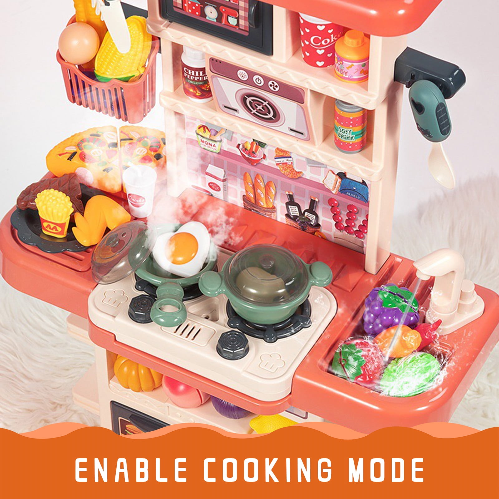Kaimingweb Kids Play Kitchen Set – 43 Pcs Pretend Cooking Toys with Real Spray, Steam & Sound! Compact 29” Design for Small Spaces – Safe, Interactive Toddler Toy (Ages 3-8)