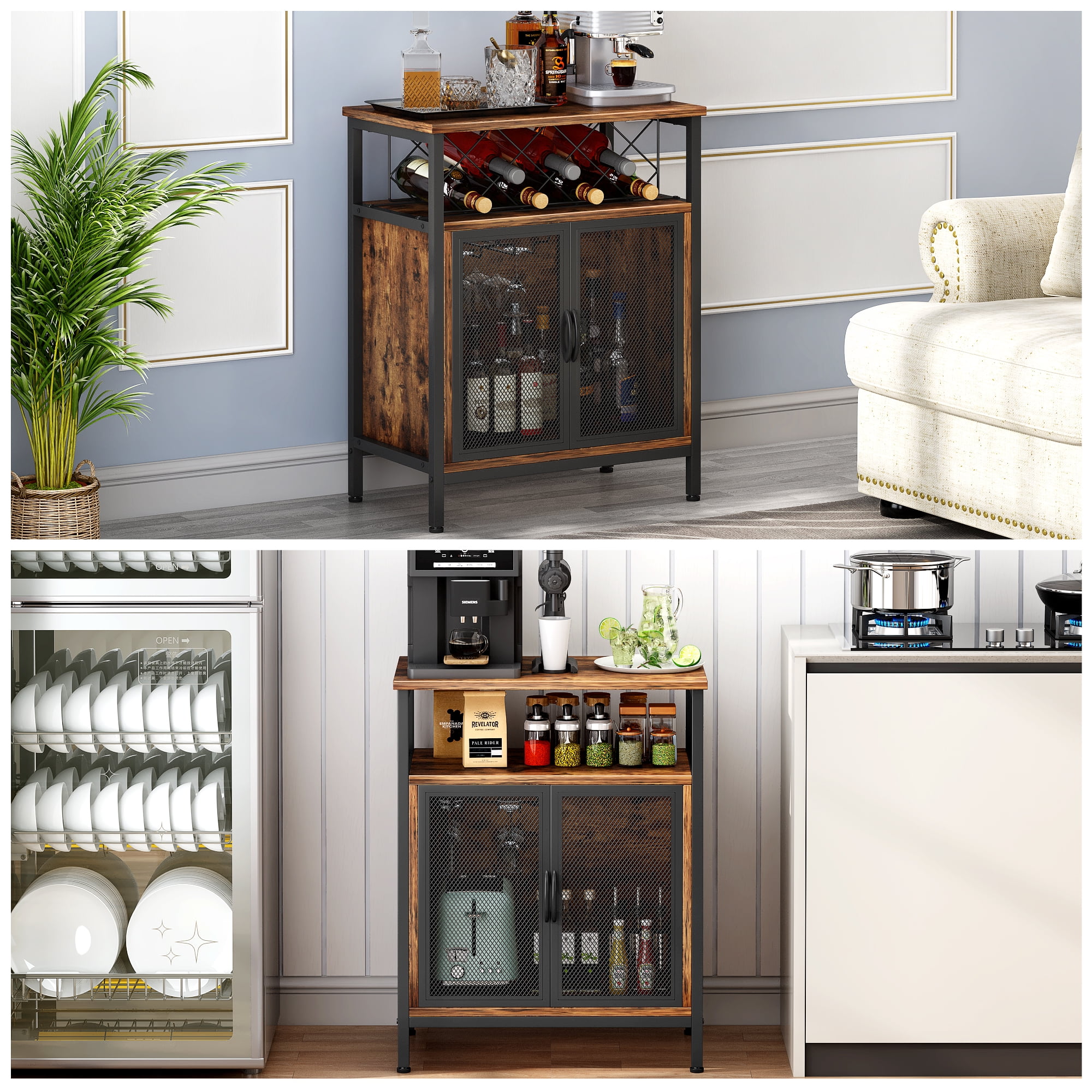 Kalrin Multifunctional Industrial Wine Bar Cabinet This is not just a bar cabinet, it is a good choice for life!!! This Kalrin wine cabinet is made of sturdy and power-coated metal frame and high-quality particle board, which can serve for a long time. Equipped with a tabletop, wine rack, goblet rack, mesh door cabinet, it has ample storage space. Whether it is used to store liquors, drinks, or display coffee machines, tableware, decorations etc., it can meet your different needs. With high-end retro appearance, this freestanding coffee bar cabinet will be a fashion and classic decoration in your home. Besides, it can not only serve as a wine bar/coffee bar cabinet in the living room but also as a serving buffet cabinet for the dining room or kitchen, which will be a great helper for entertaining guests!